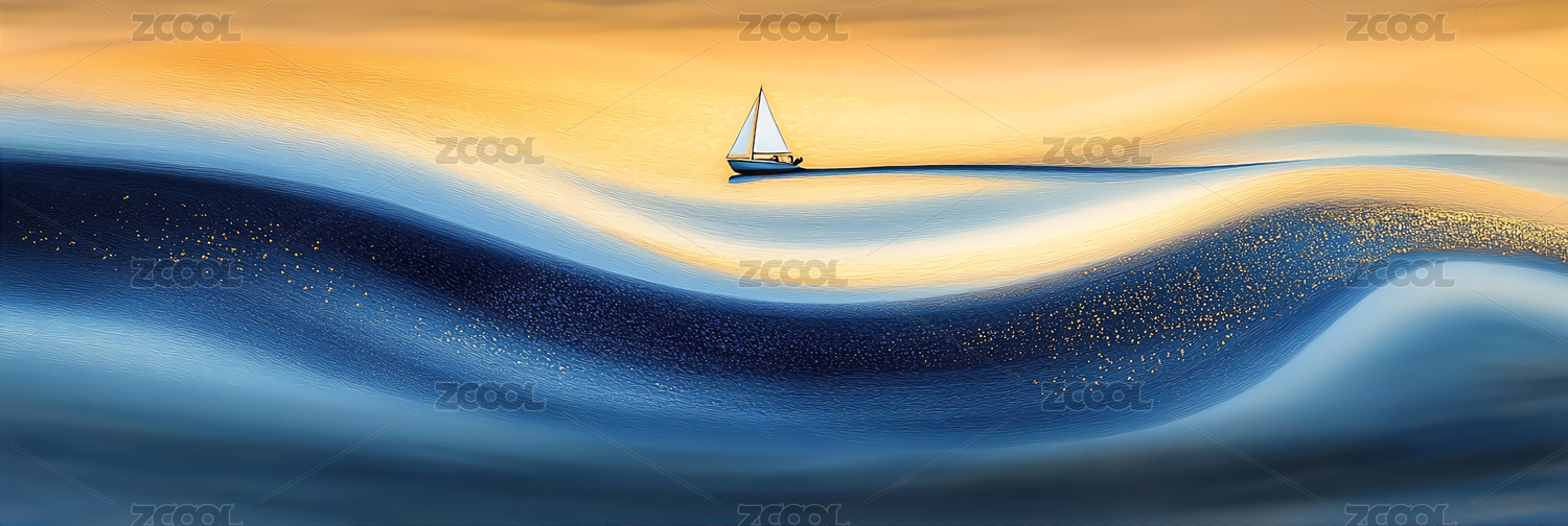 扬帆起航,蓝色,海洋,海浪,背景,插画,壁纸,渐变,光影,波浪