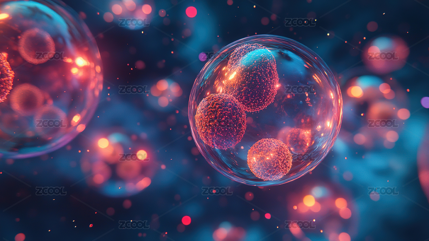 细胞,3D,DNA,透明,气泡,背景模糊,金色,颗粒,光影,梦幻
