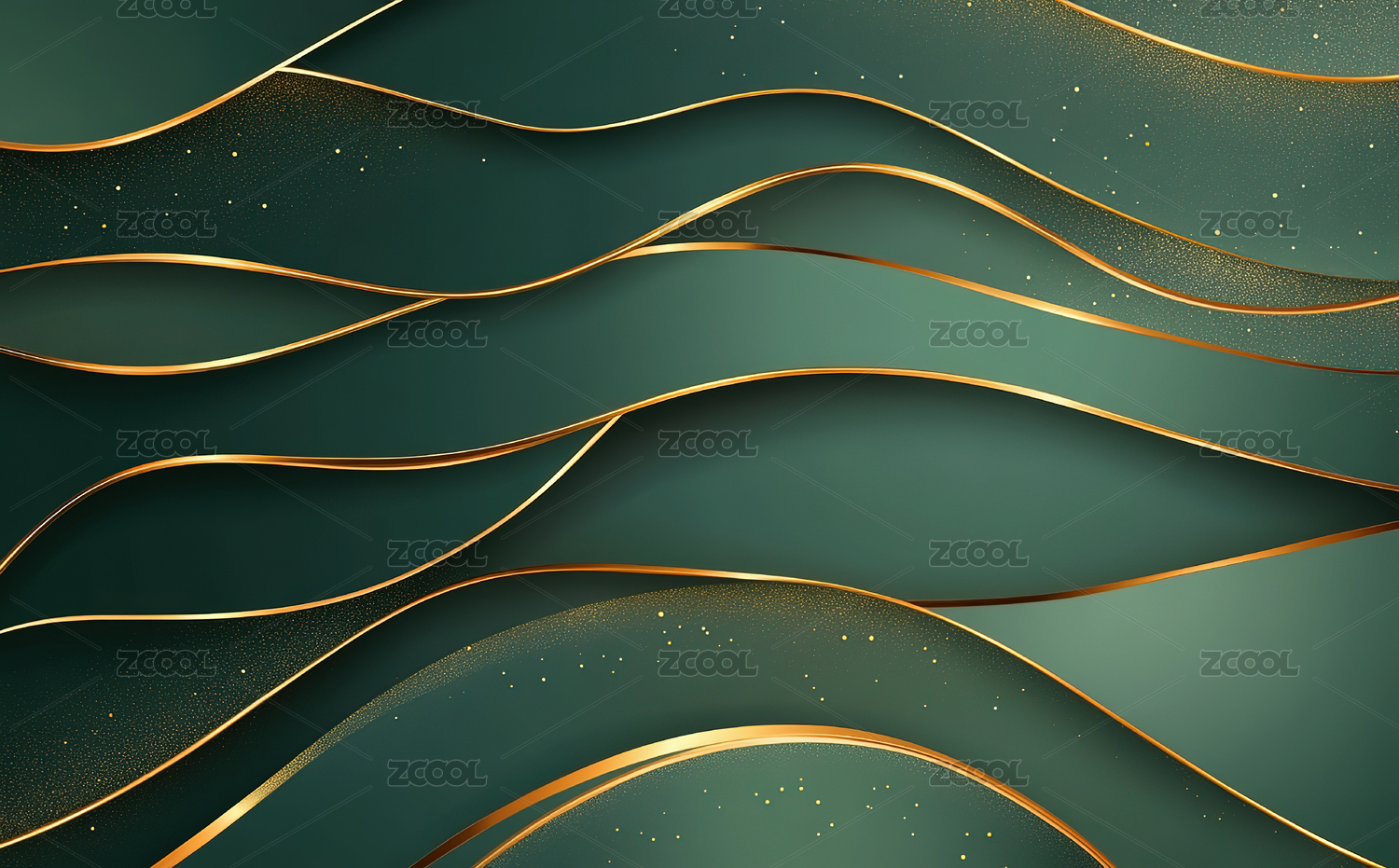 墨绿底色上的金色波浪线条