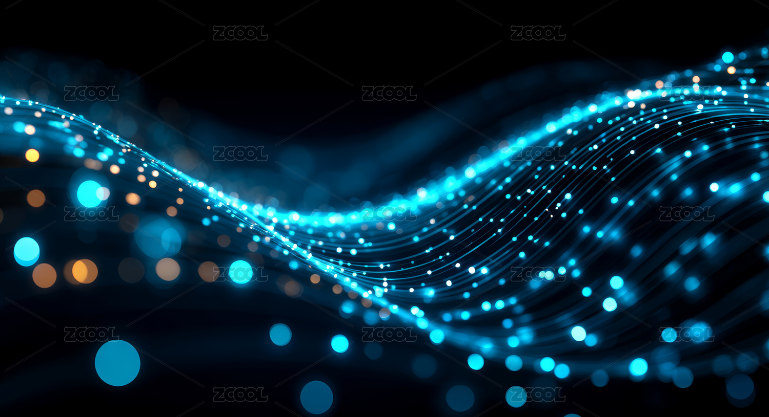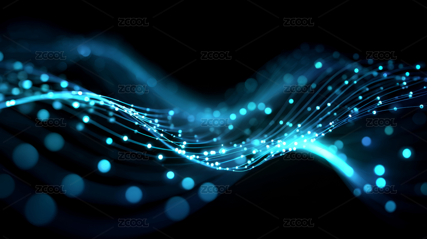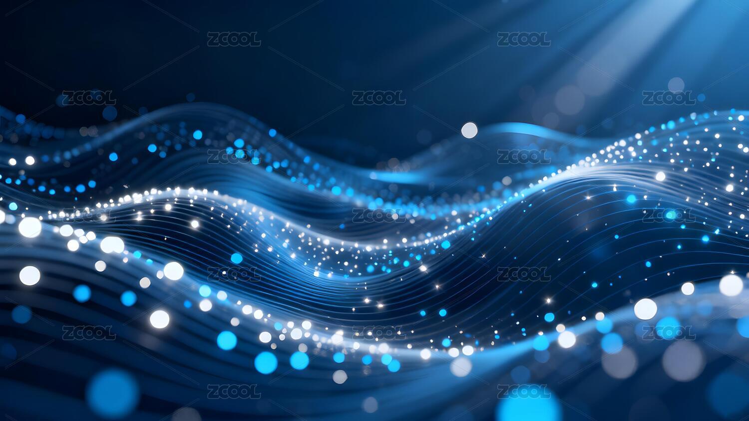 蓝色光点波浪线条