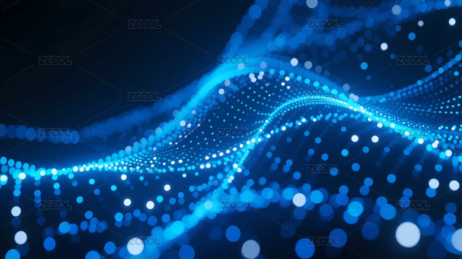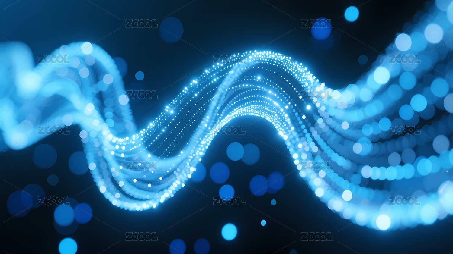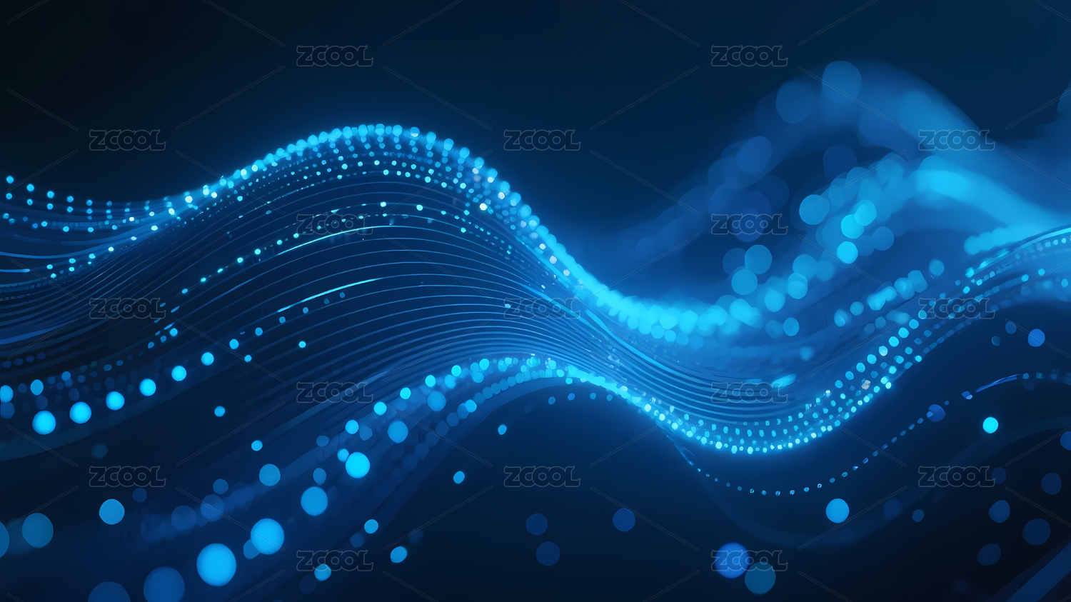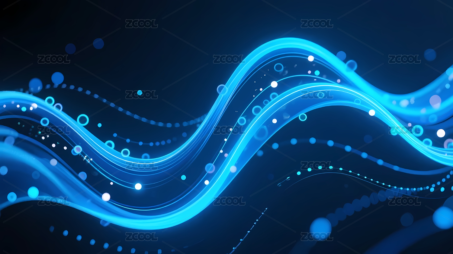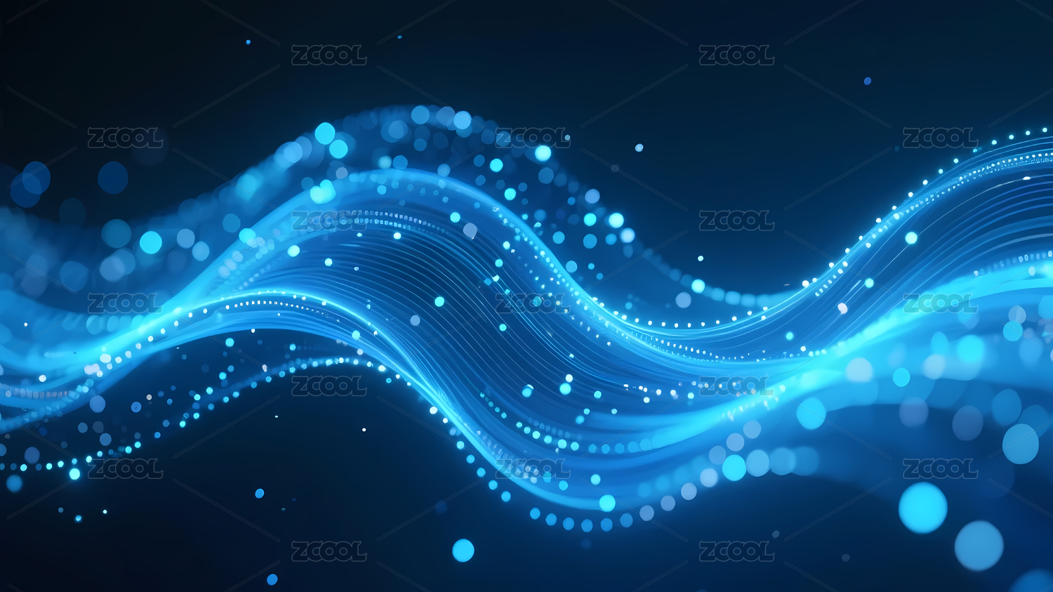 蓝色光点波浪线的科技流动感