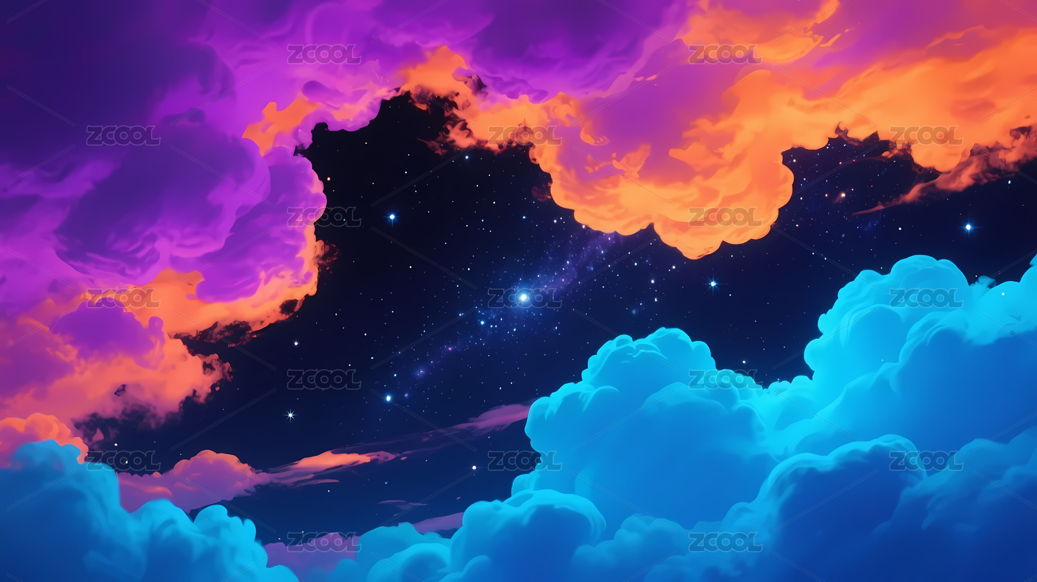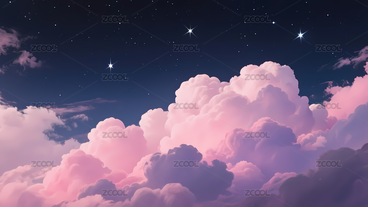 背景,深蓝,云朵,夜空,主体,点缀,紫色,星星,自然,色彩