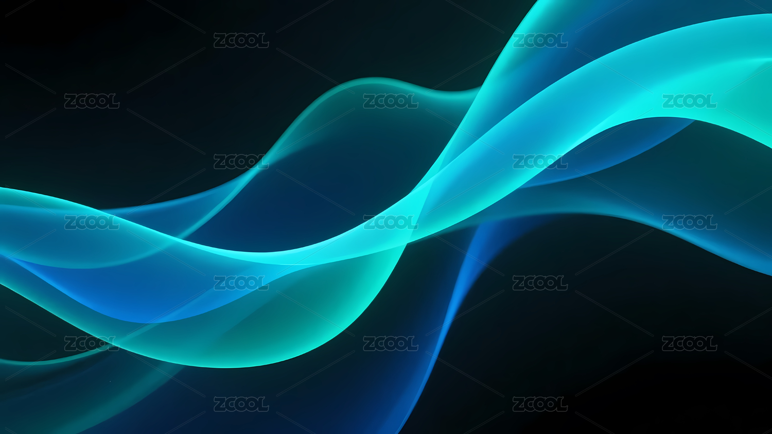 蓝绿色波浪线条与深色背景