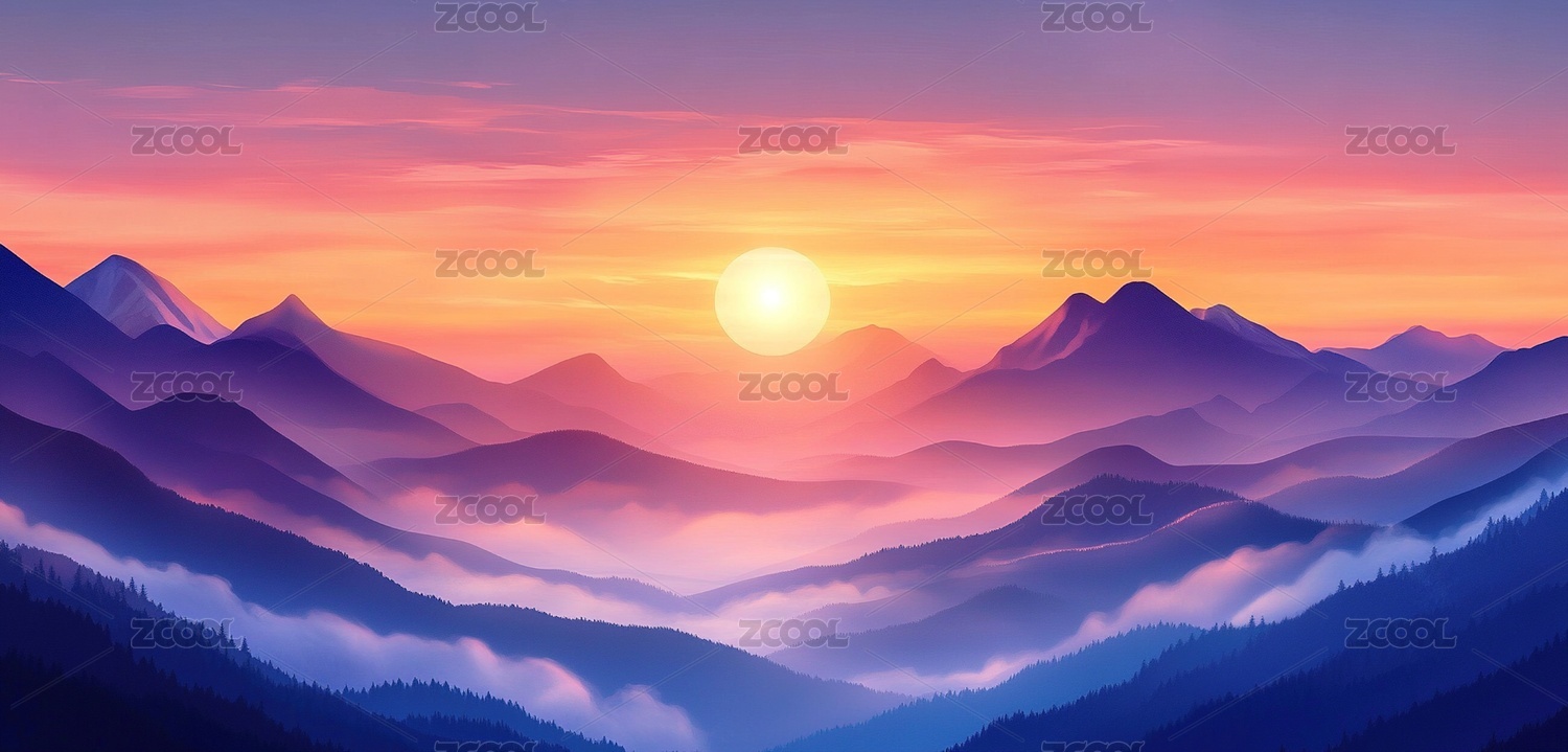 背景,自然,橙色,雪山,天空,山丘,阳光,晨雾,日出,山谷