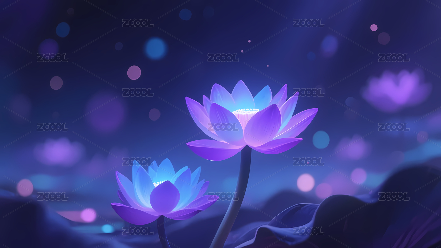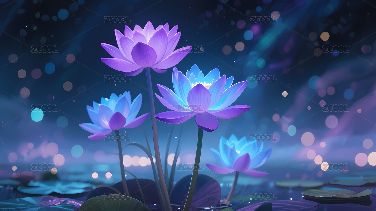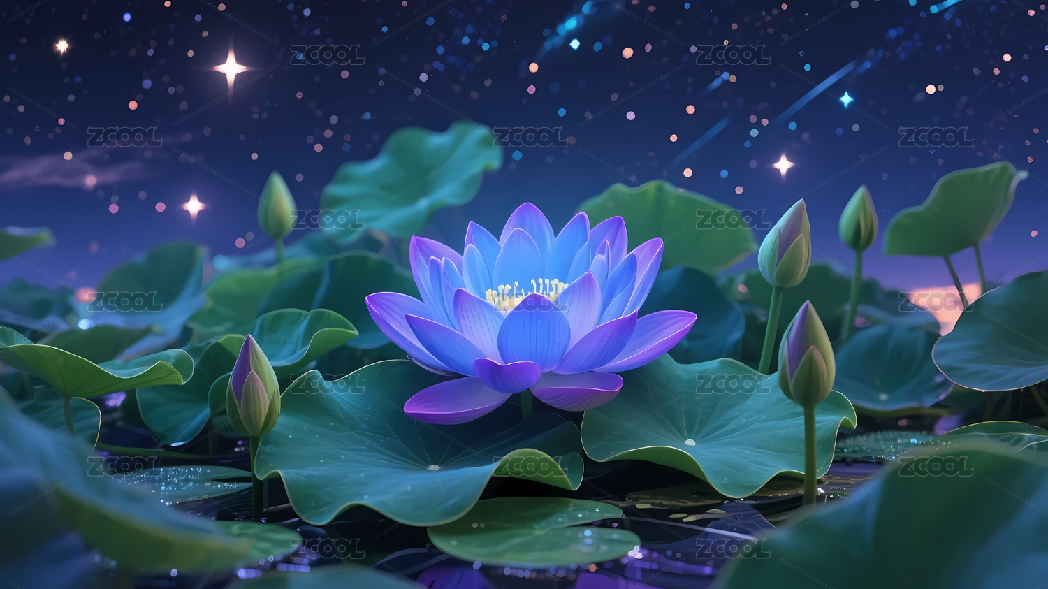 绿色,背景,黄色,夜空,星星,紫色,花瓣,莲花,花蕾,微光