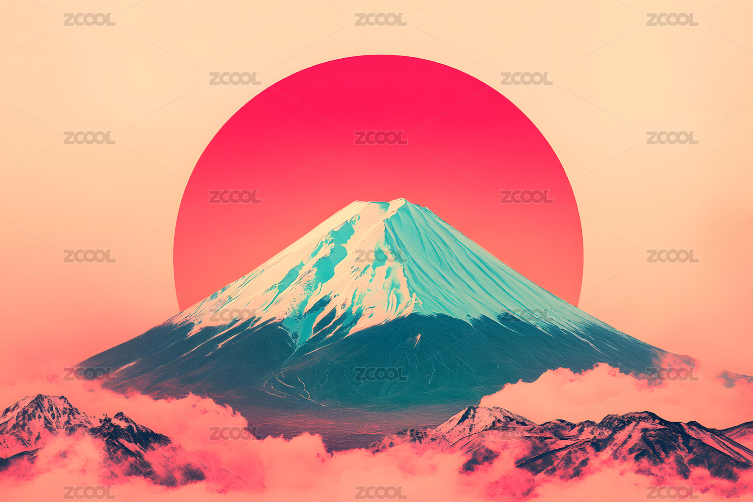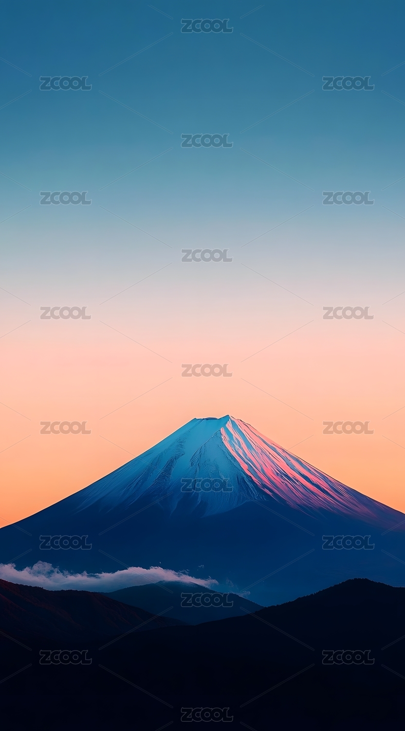 紫粉渐变柔和富士山