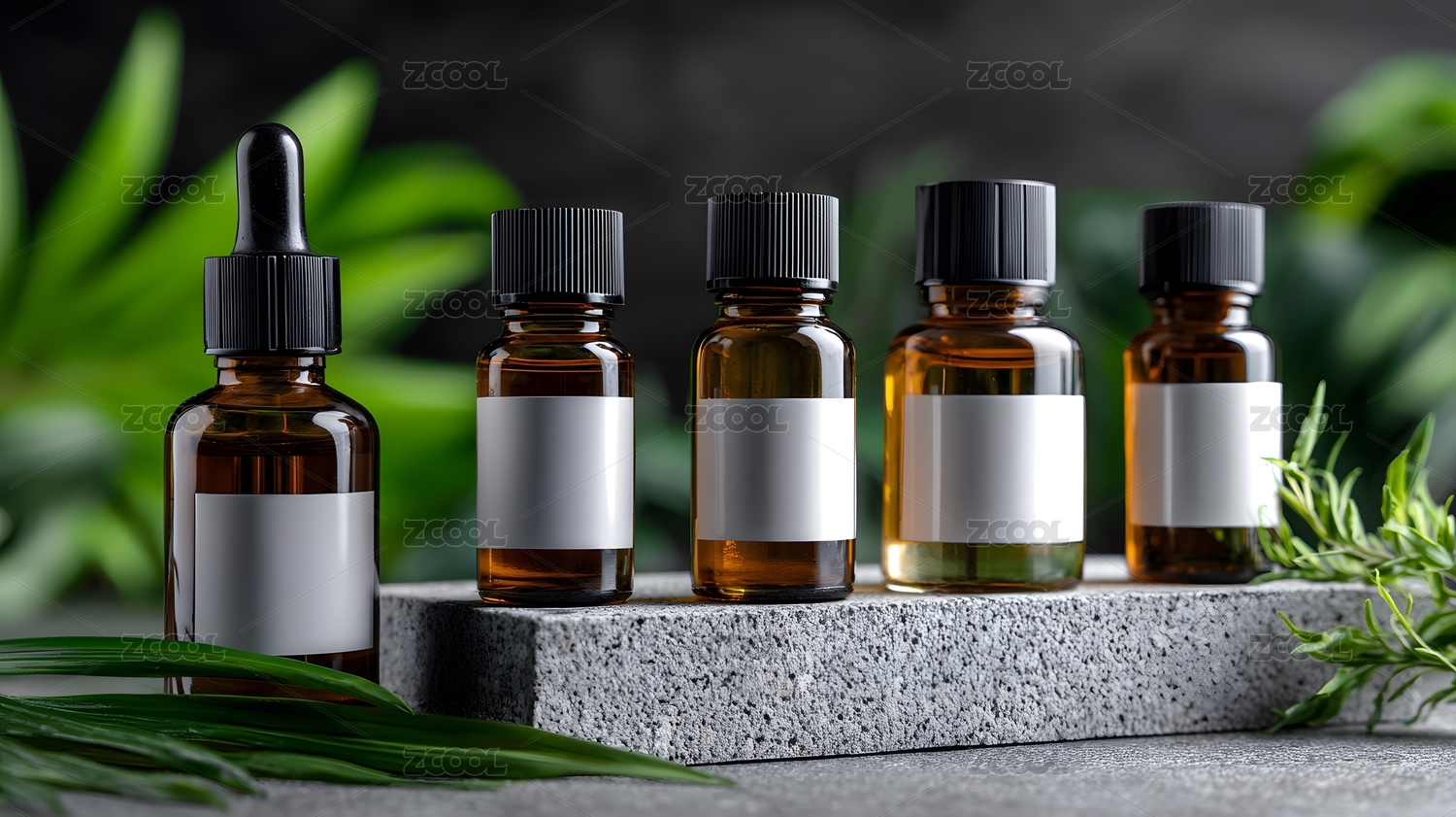 棕色滴管瓶绿叶前景
