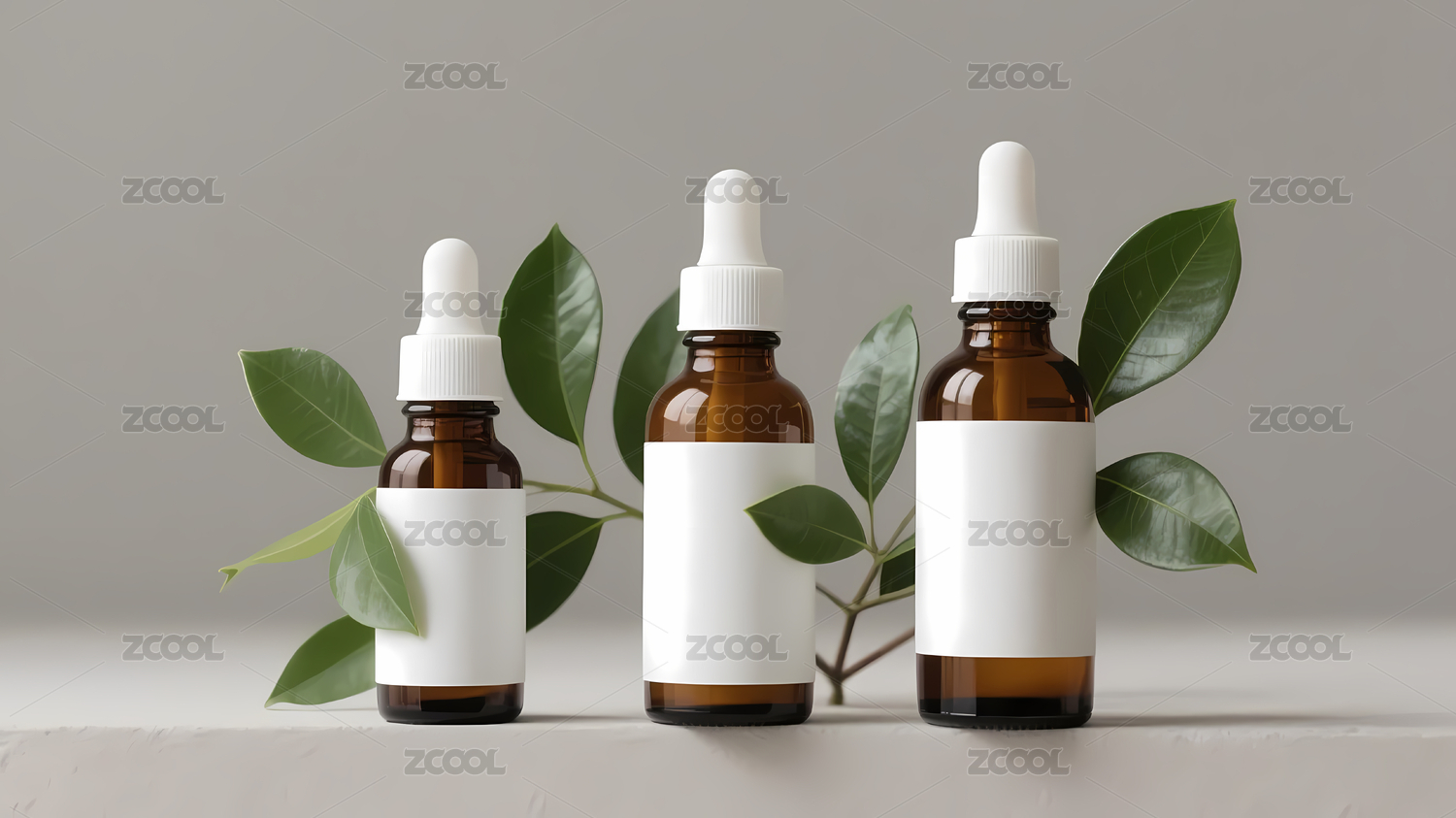 棕色滴管瓶与绿叶