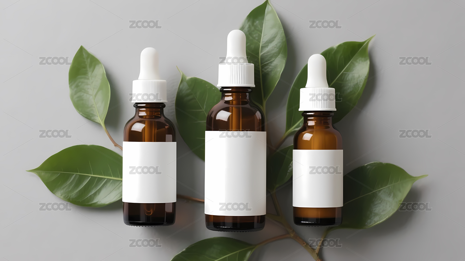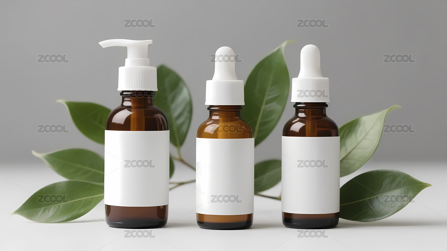 多样护肤瓶绿叶装饰
