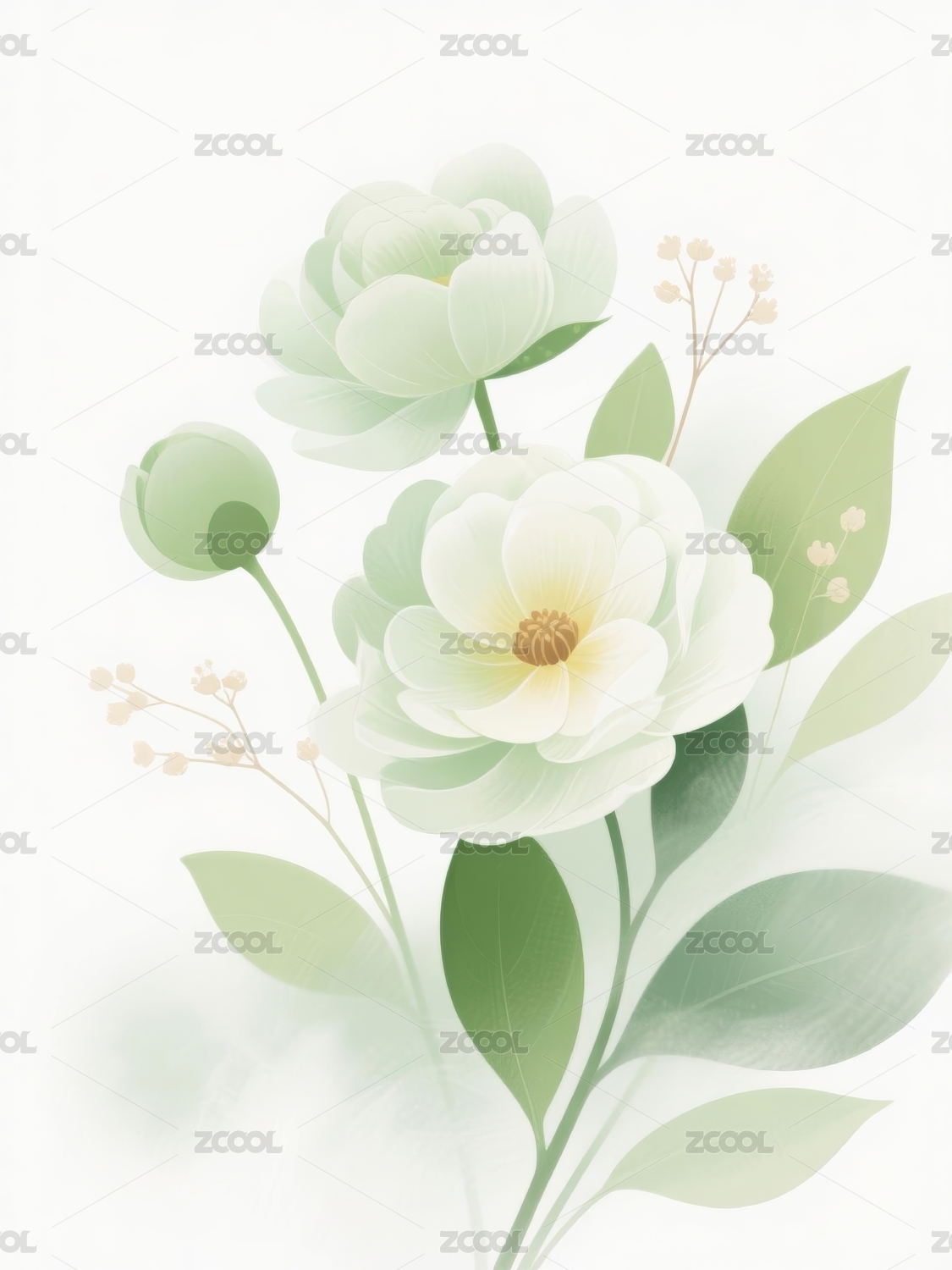 主视觉,白色,花朵,清新感,花卉,装饰,场景,花瓣,绿叶,小花