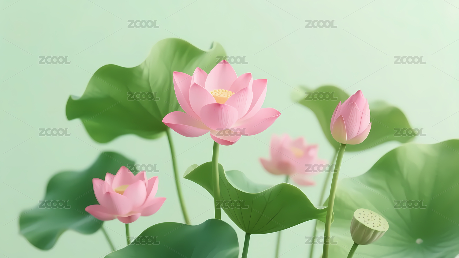 粉莲花粉绿渐变背景