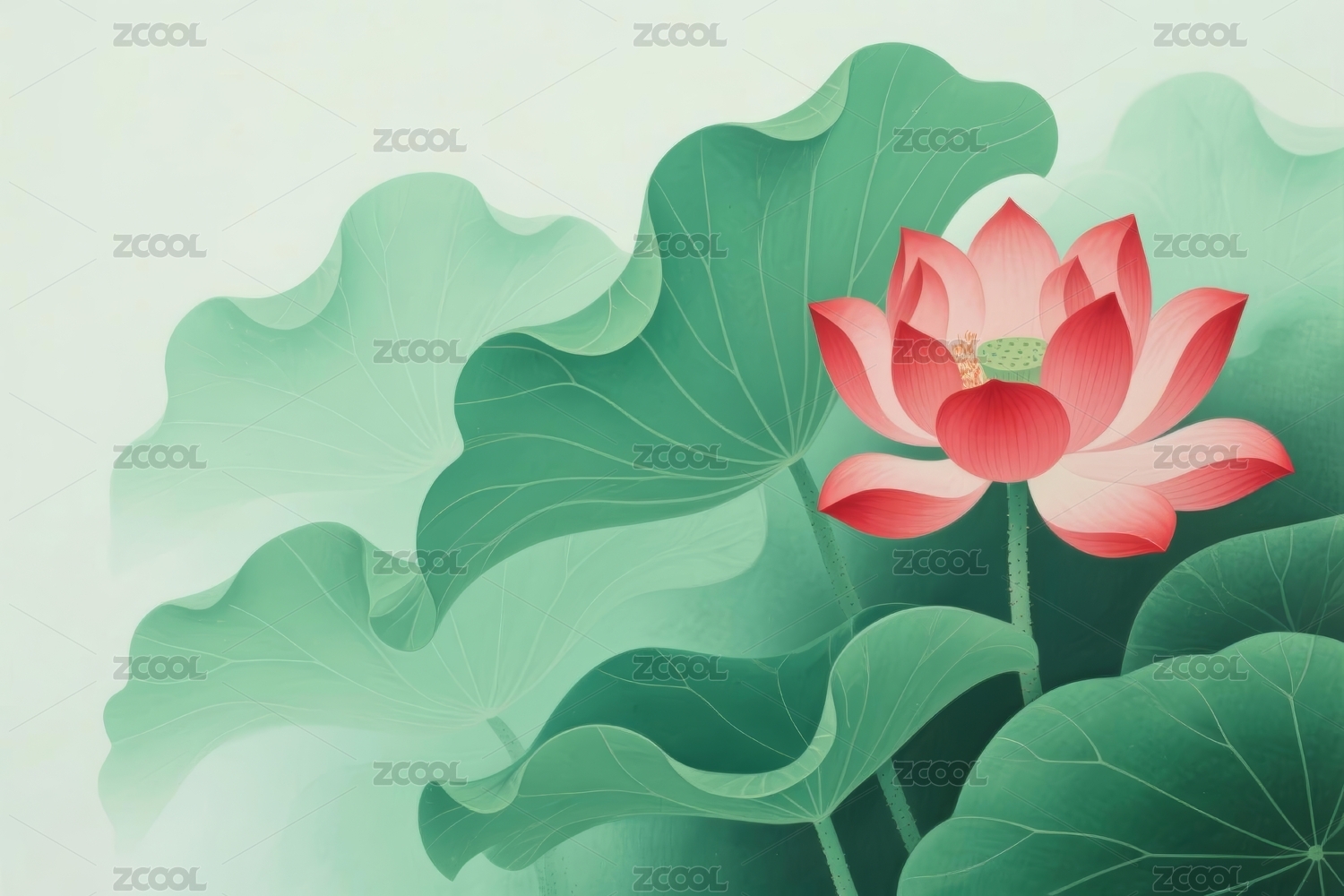 清新的荷花插图背景