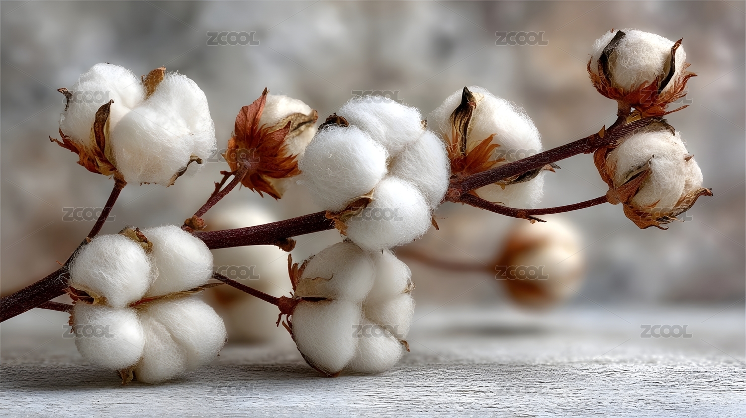 棉花,白色,枝干,特写,浅灰,背景,植物,柔软,自然,简约