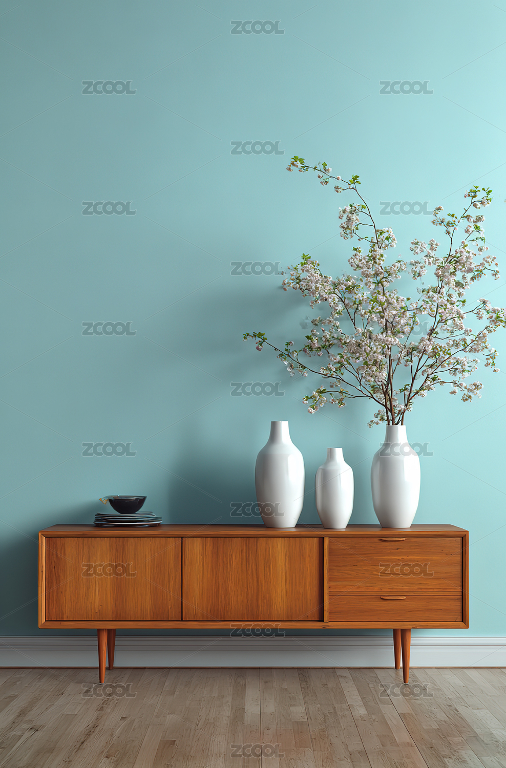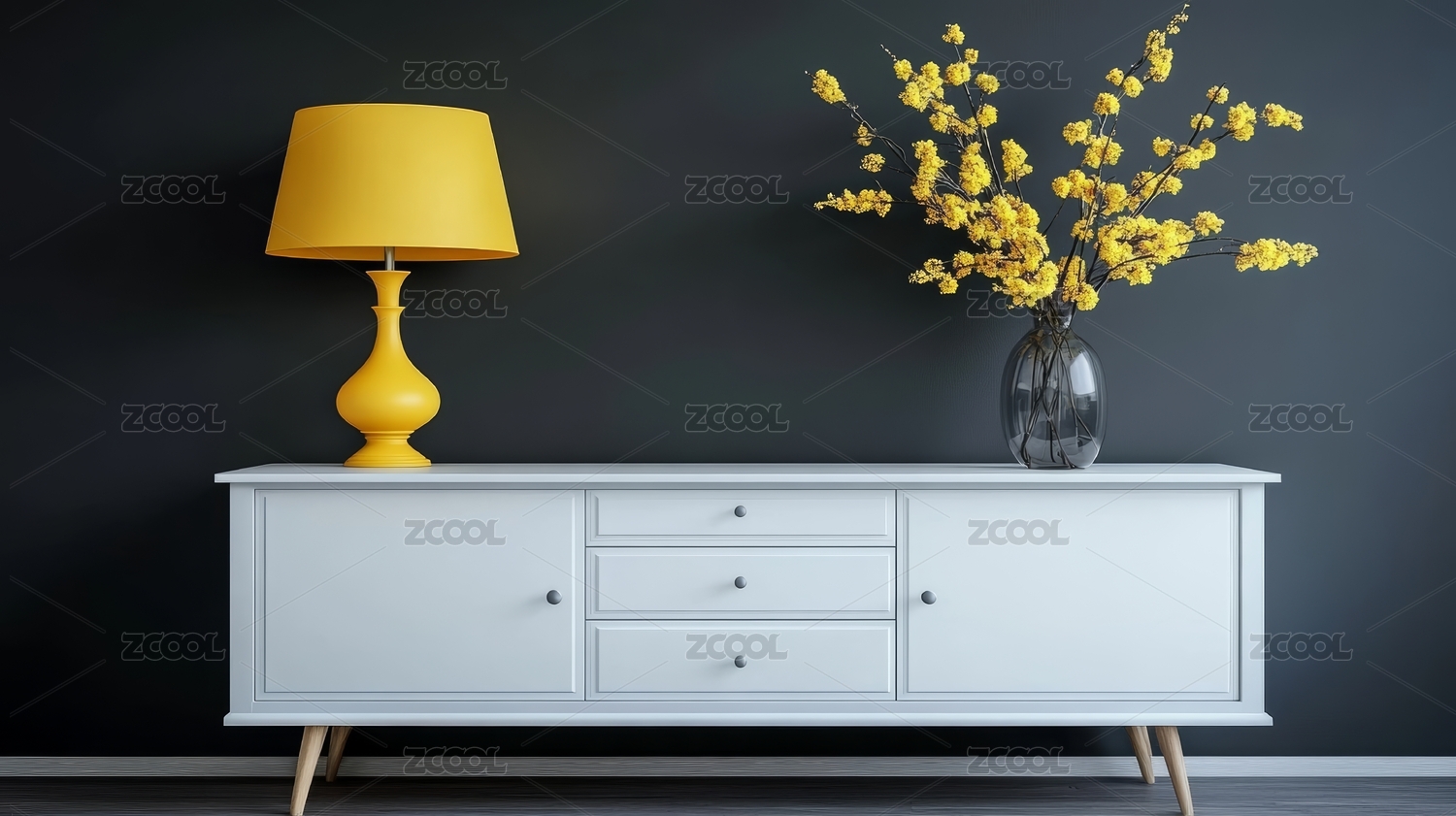 简约木柜摆饰自然光影图