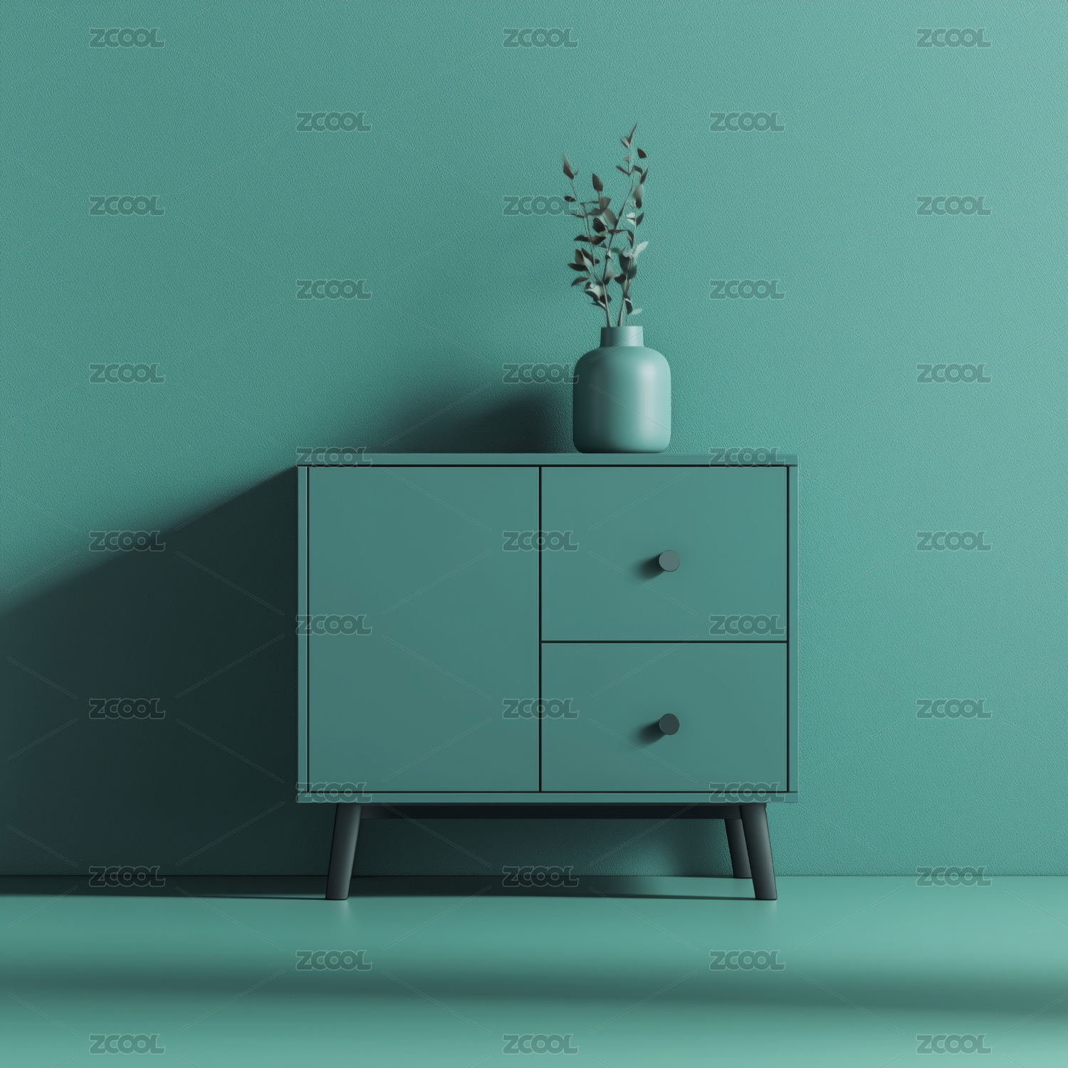 绿色单色柜子立体插画