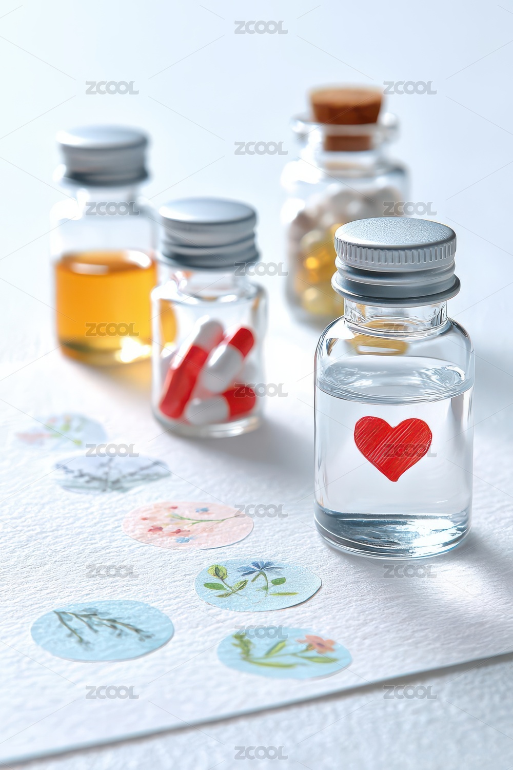 背景,液体,透明,植物,心形,药瓶,胶囊,标贴