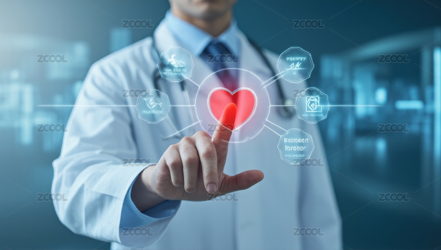 医生触摸虚拟心脏图标