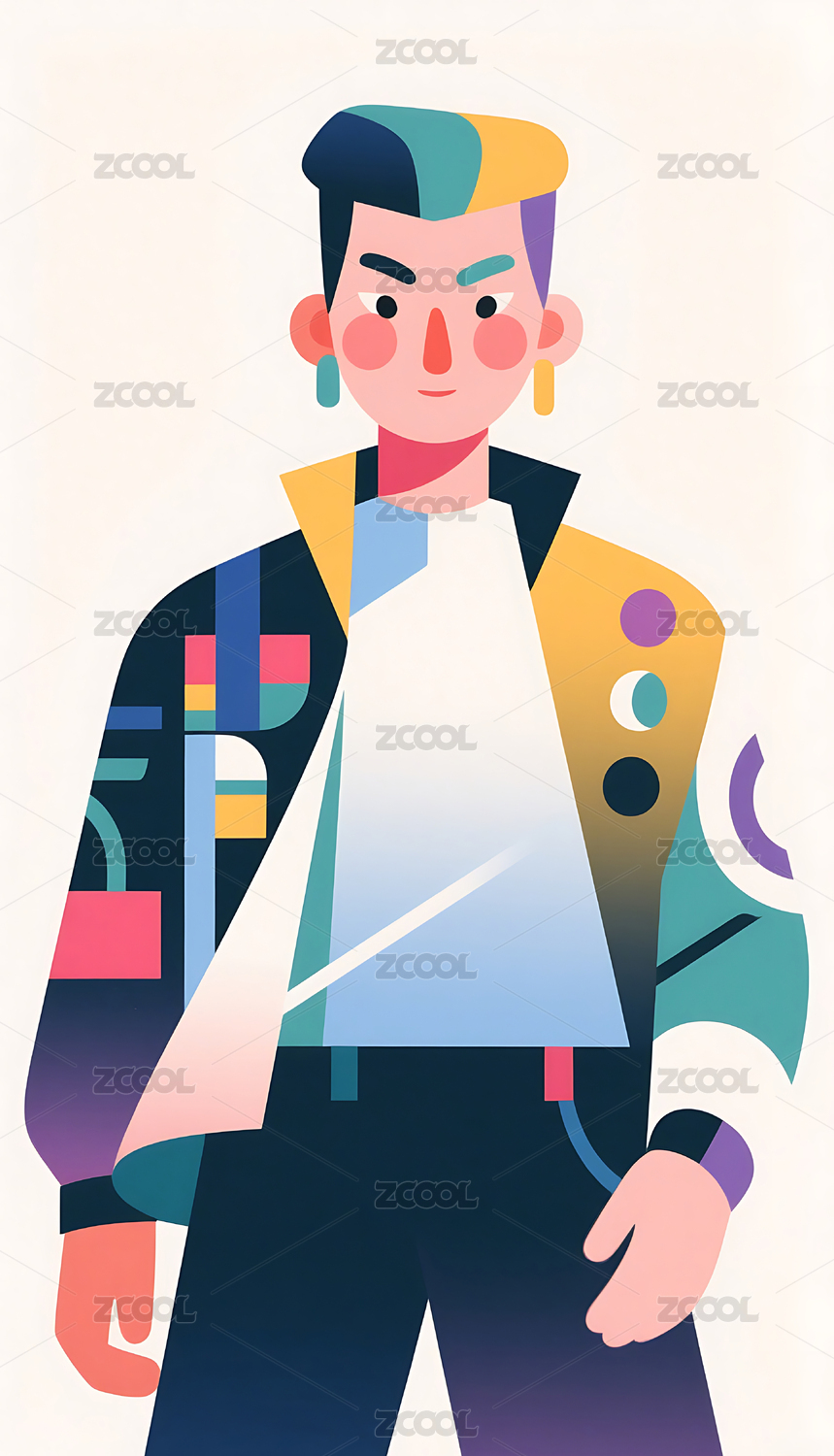 扁平风格,美式,帅气,时尚,男生,男孩,背景,壁纸,插画