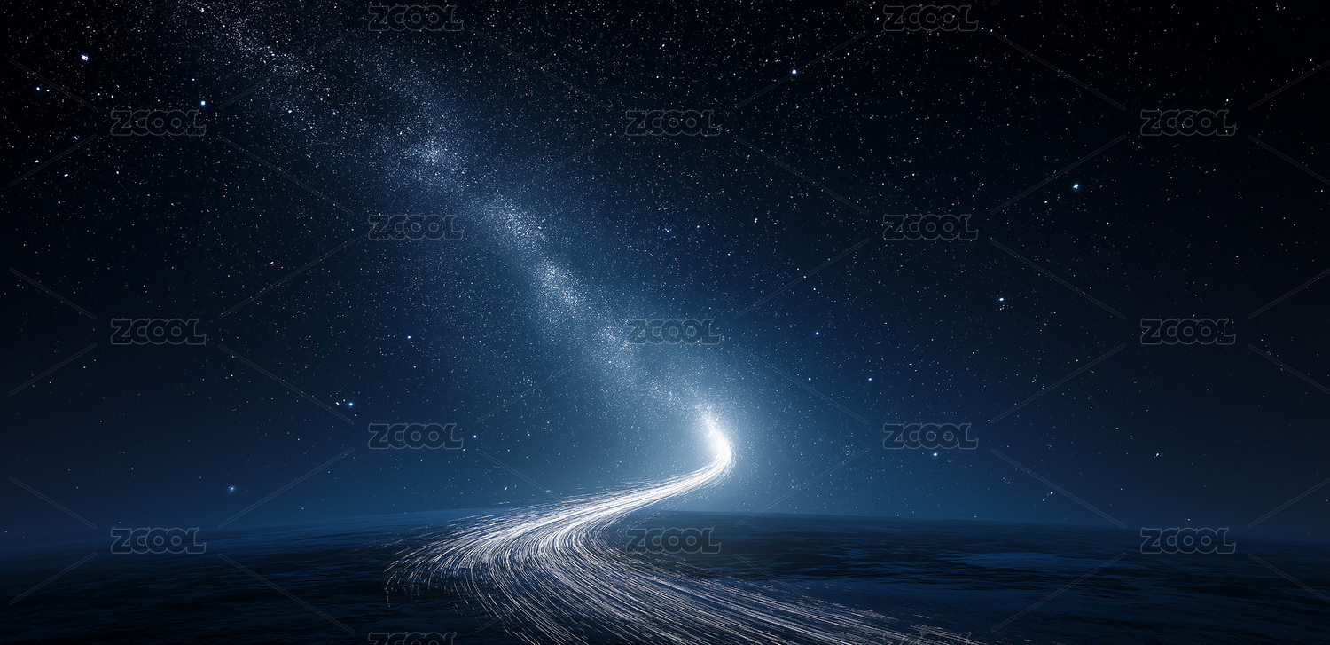 星空,光轨,蜿蜒,夜空,远方,延伸,道路,蓝色,梦幻,银河