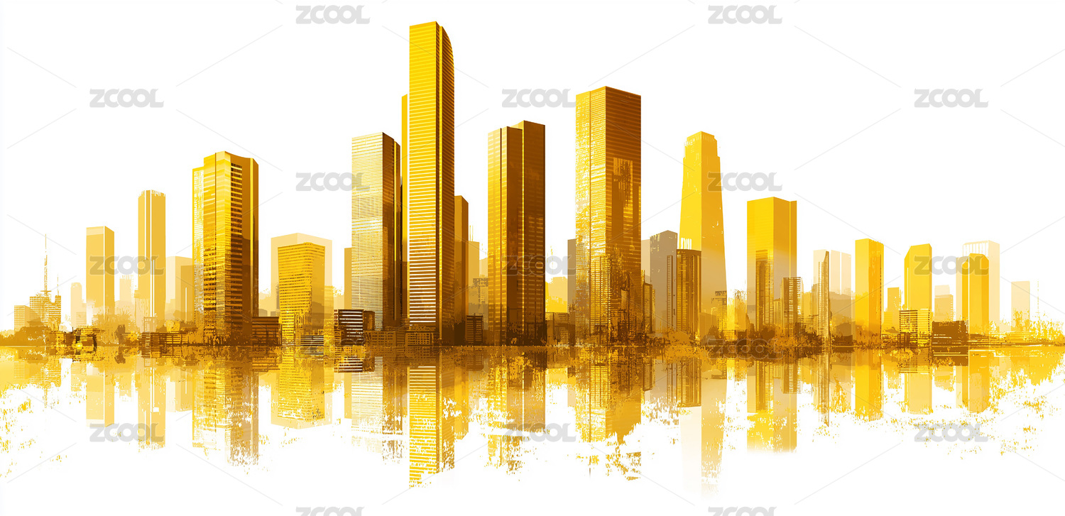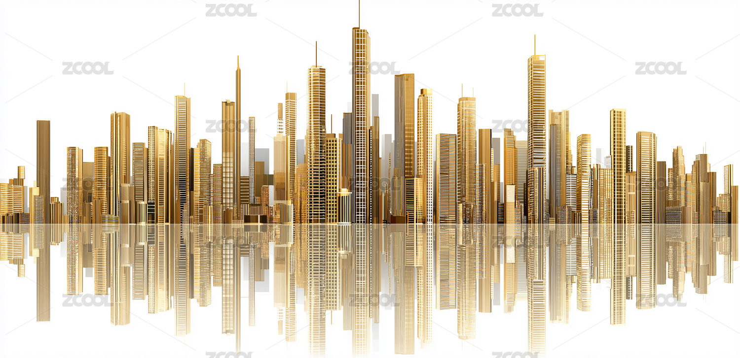 城市,建筑,天际,金色,倒影,艺术,插画,现代,高端,奢华