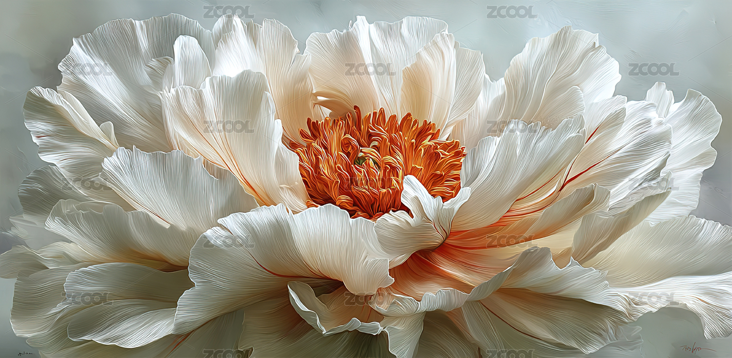 白粉牡丹花与灰色背景的宁静氛围