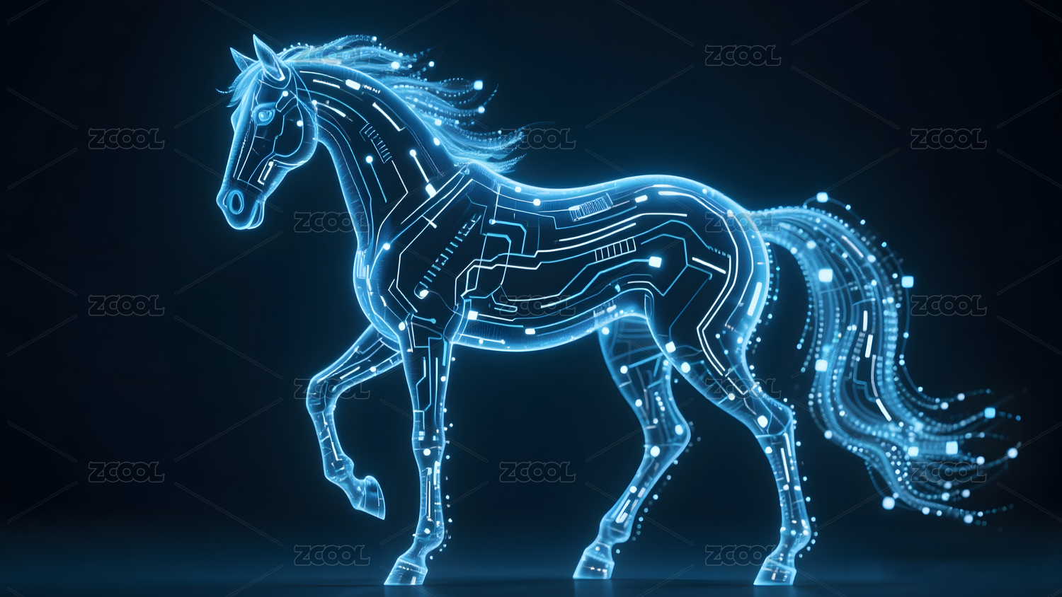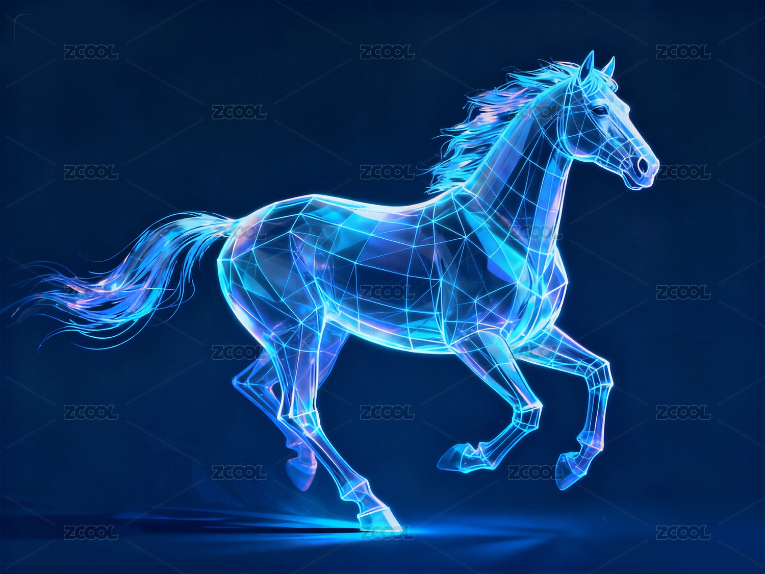 唯美,金属,透明,彩色,全息,骏马,3D,卡通,立体,插画