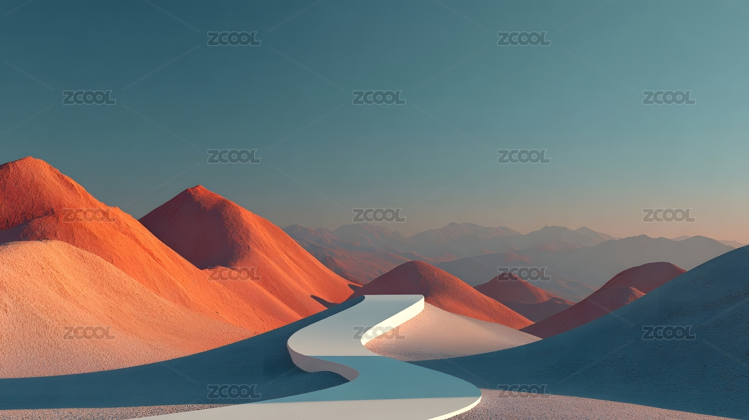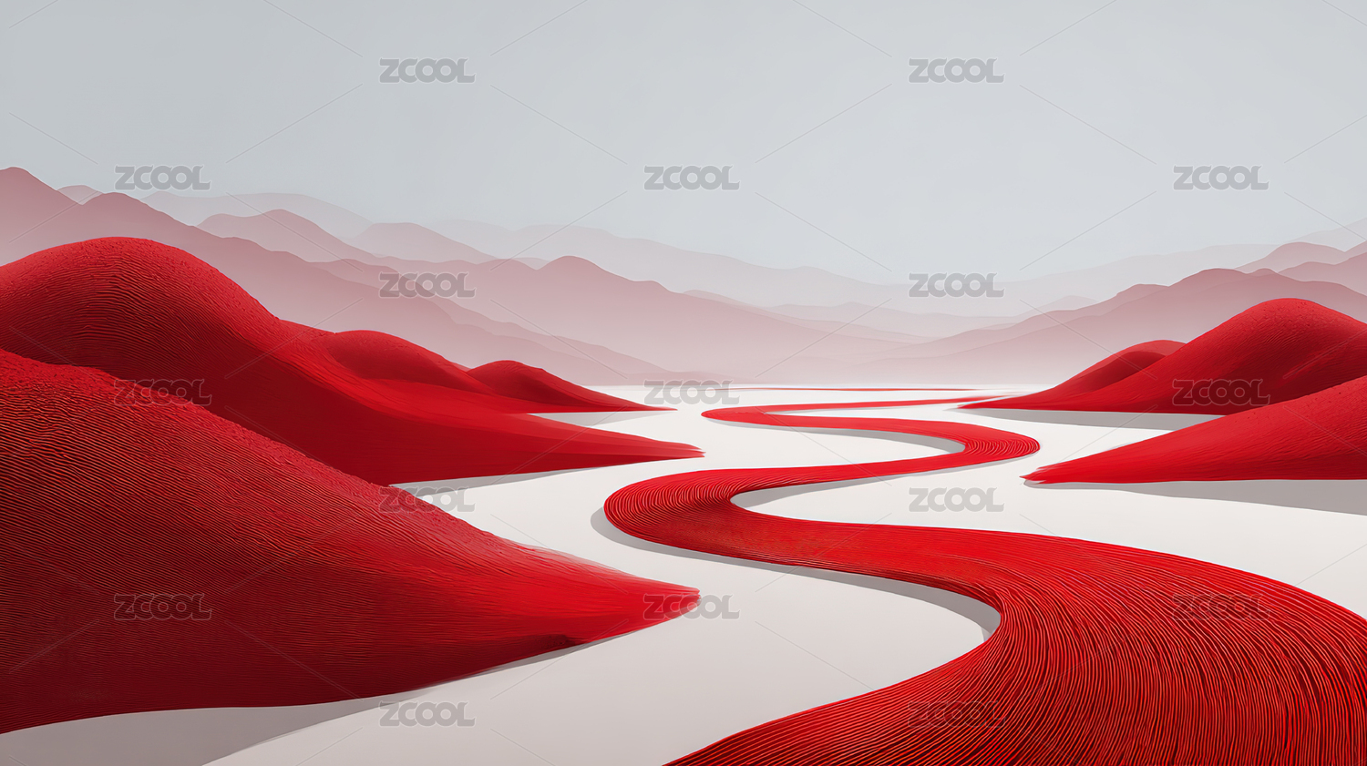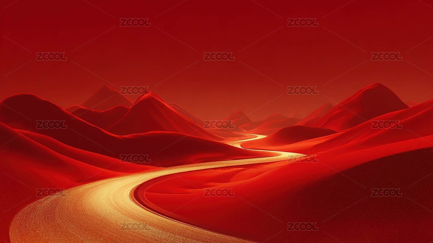 红色弯曲高速公路道路抽象蜿蜒山路插画背景
