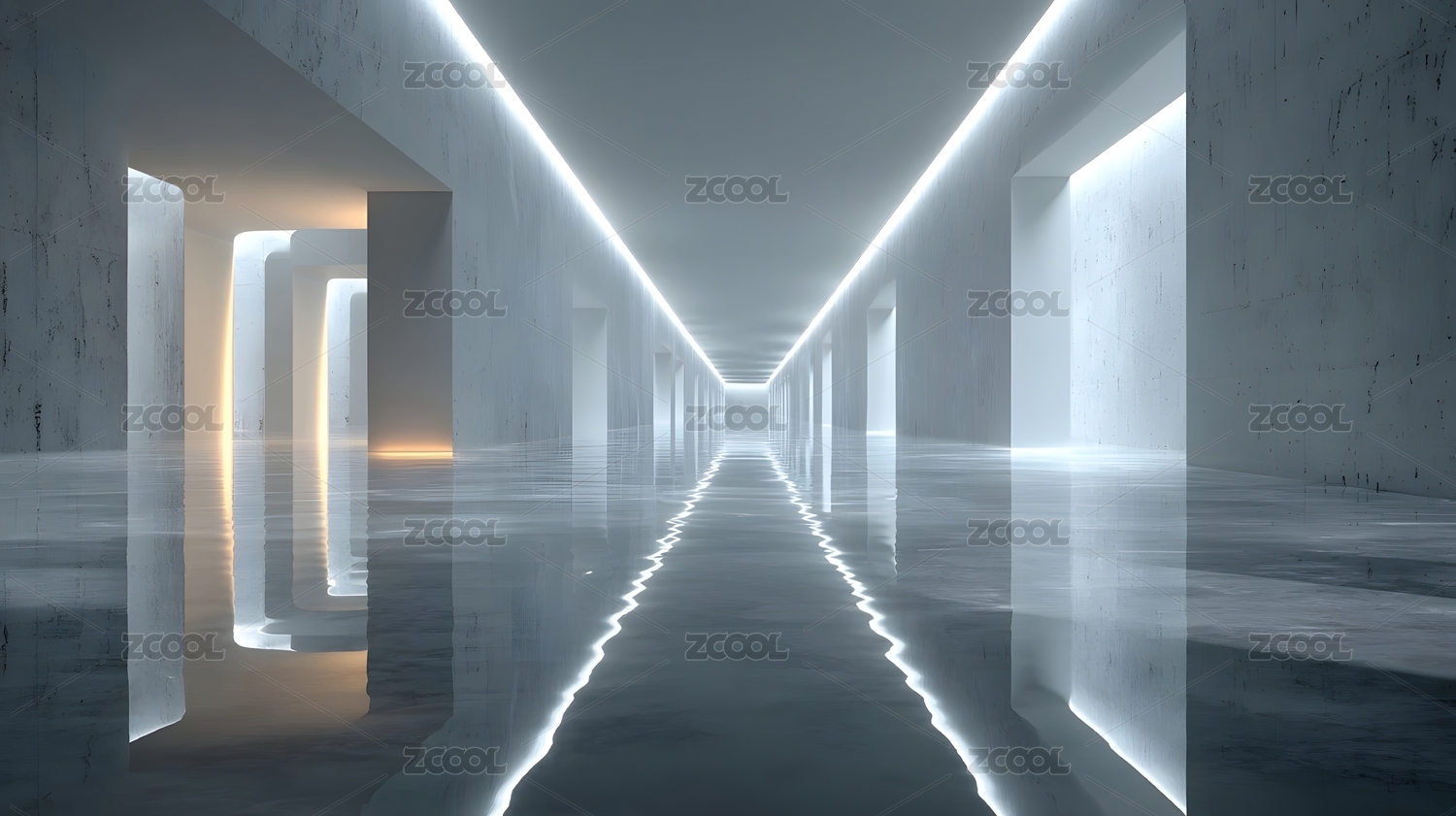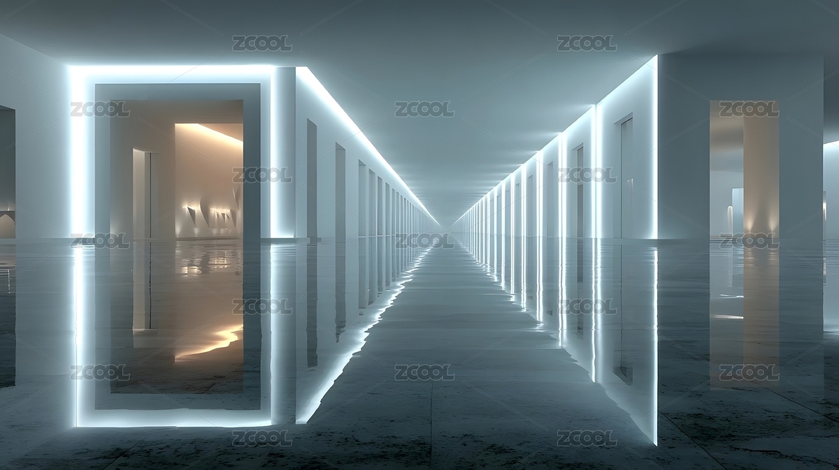 白色发光走廊的现代空间