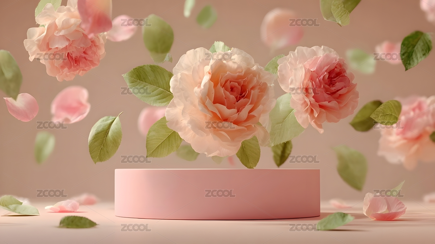 粉色花卉与圆形展示台背景