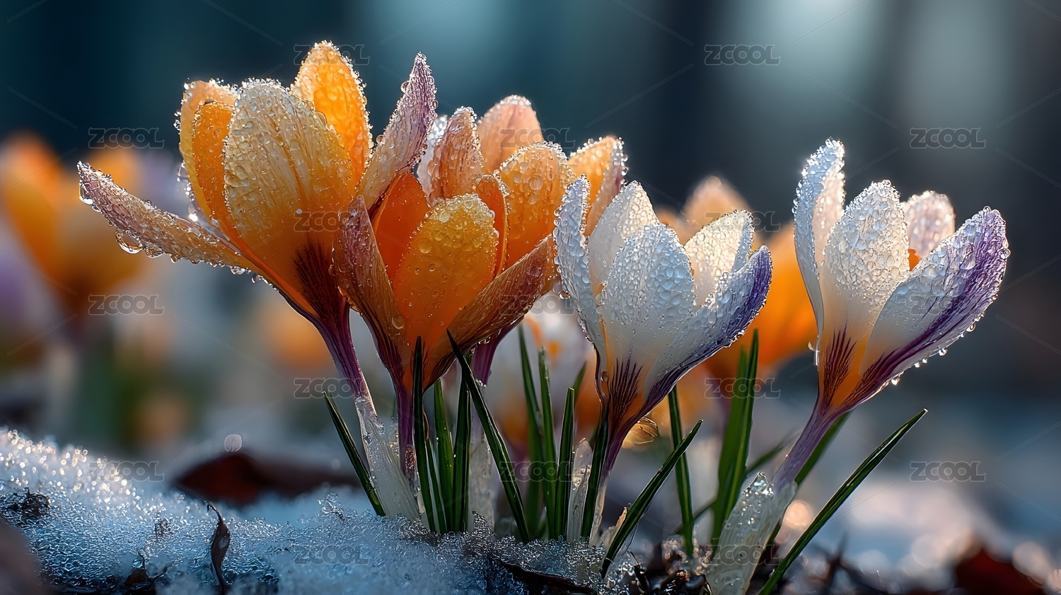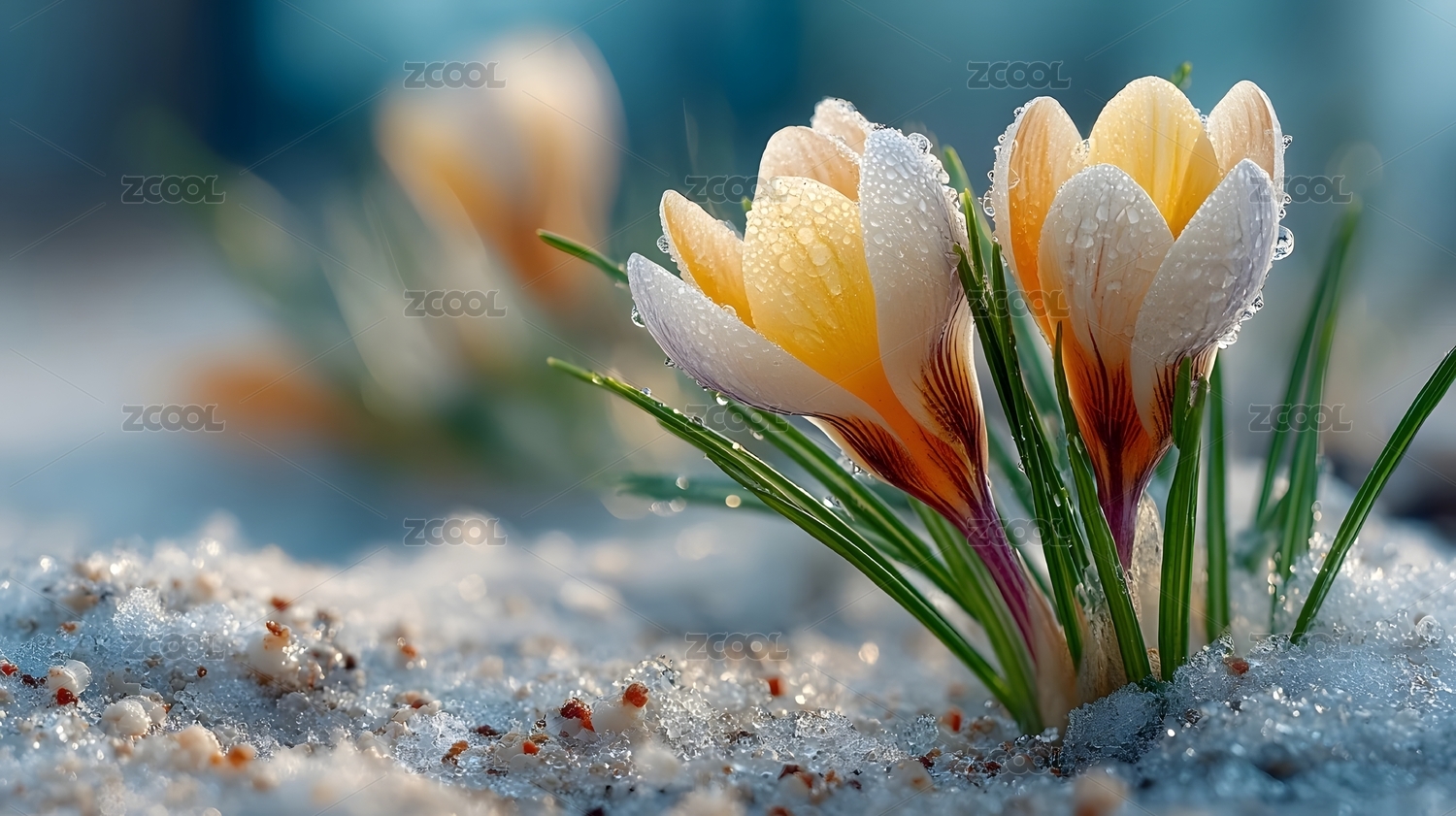 冰雪中绽放的番红花