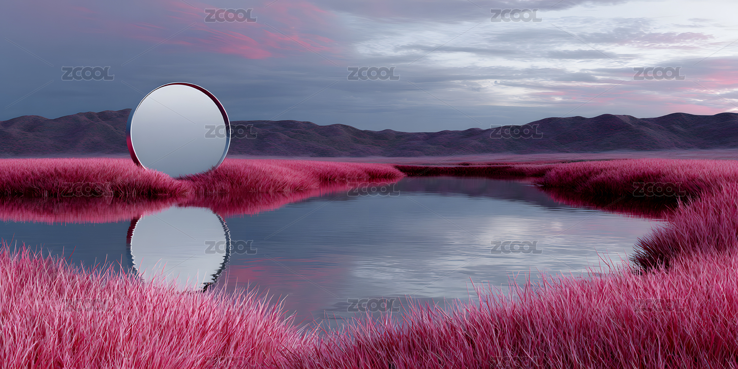 自然,静谧,石头,植物,背景,花朵,圆形,天空,花丛,风景