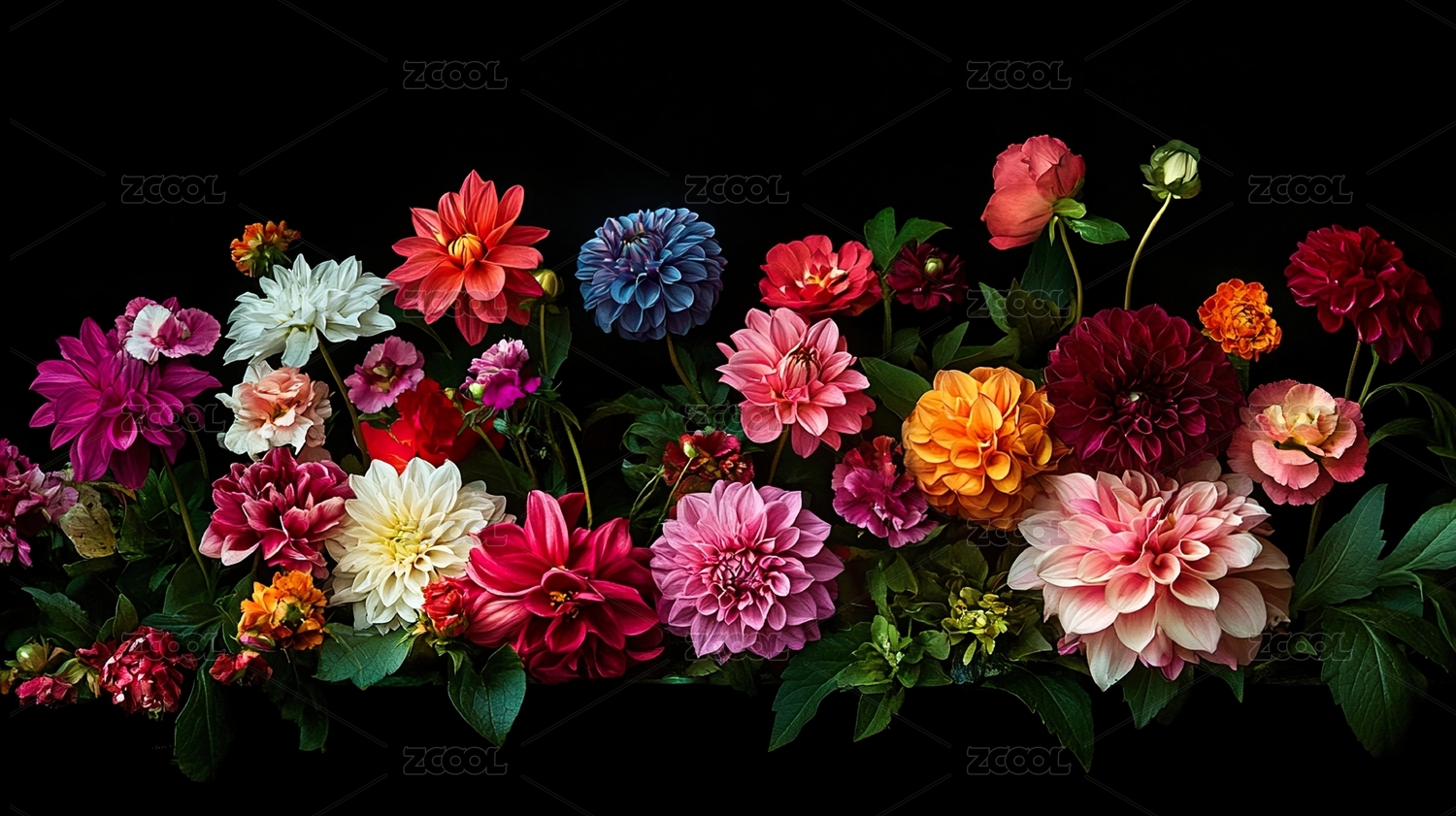 多彩花卉的精细结构与纹理