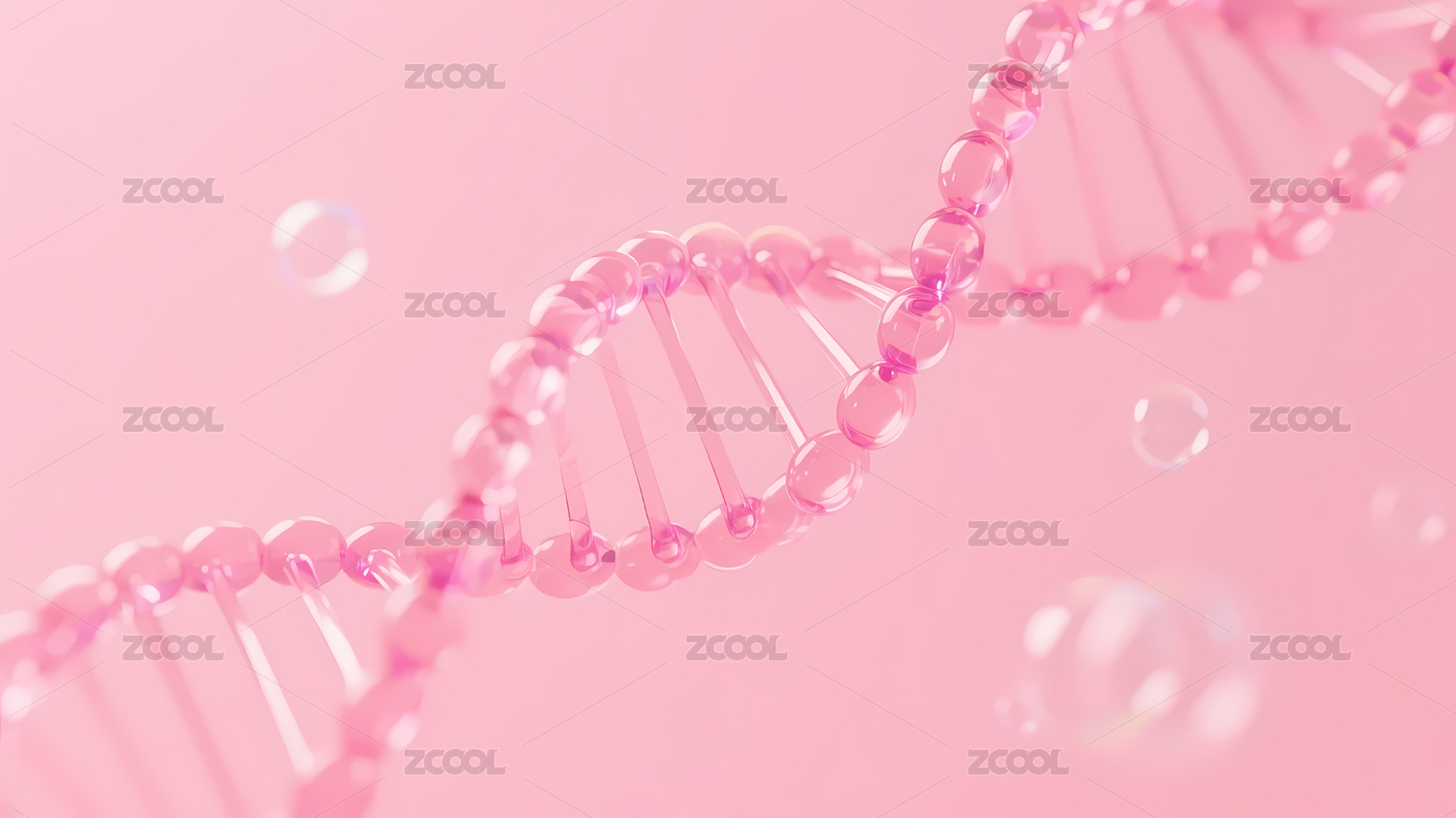 粉色DNA双螺旋与气泡