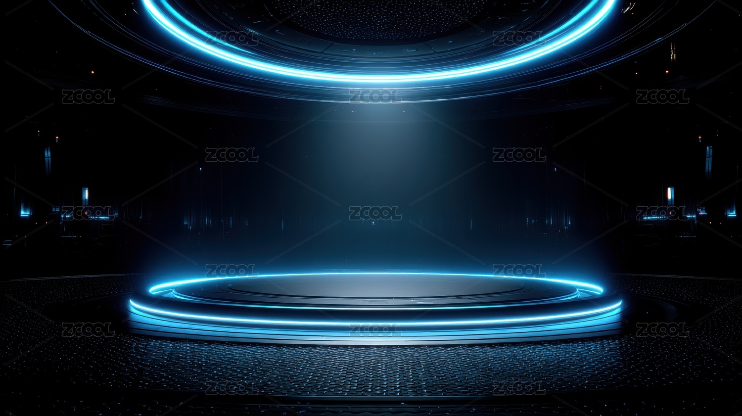 背景,蓝色,深色,紫色,未来,科技,霓虹灯,圆形,舞台,聚光灯