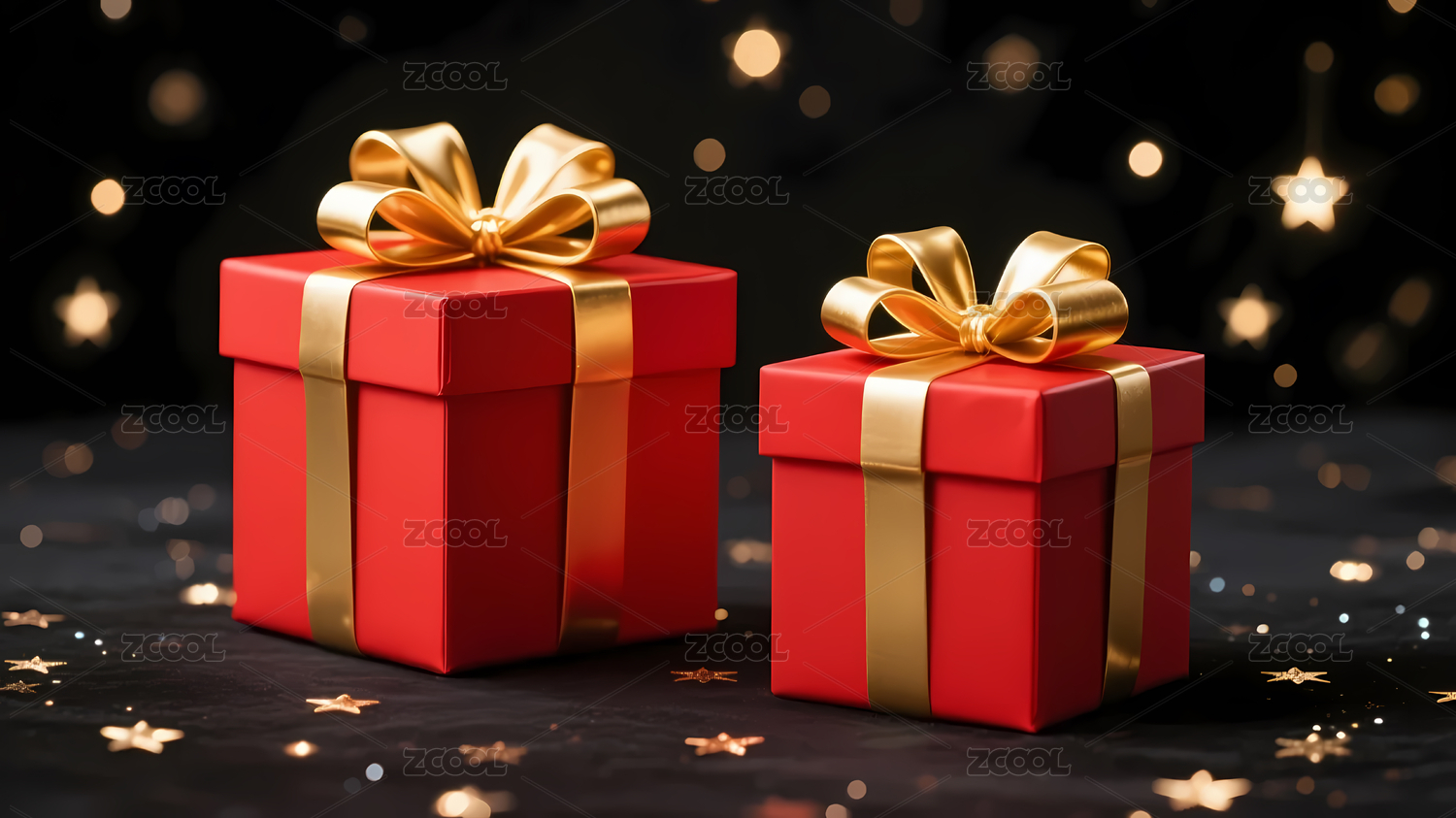 红色礼盒与金色星光