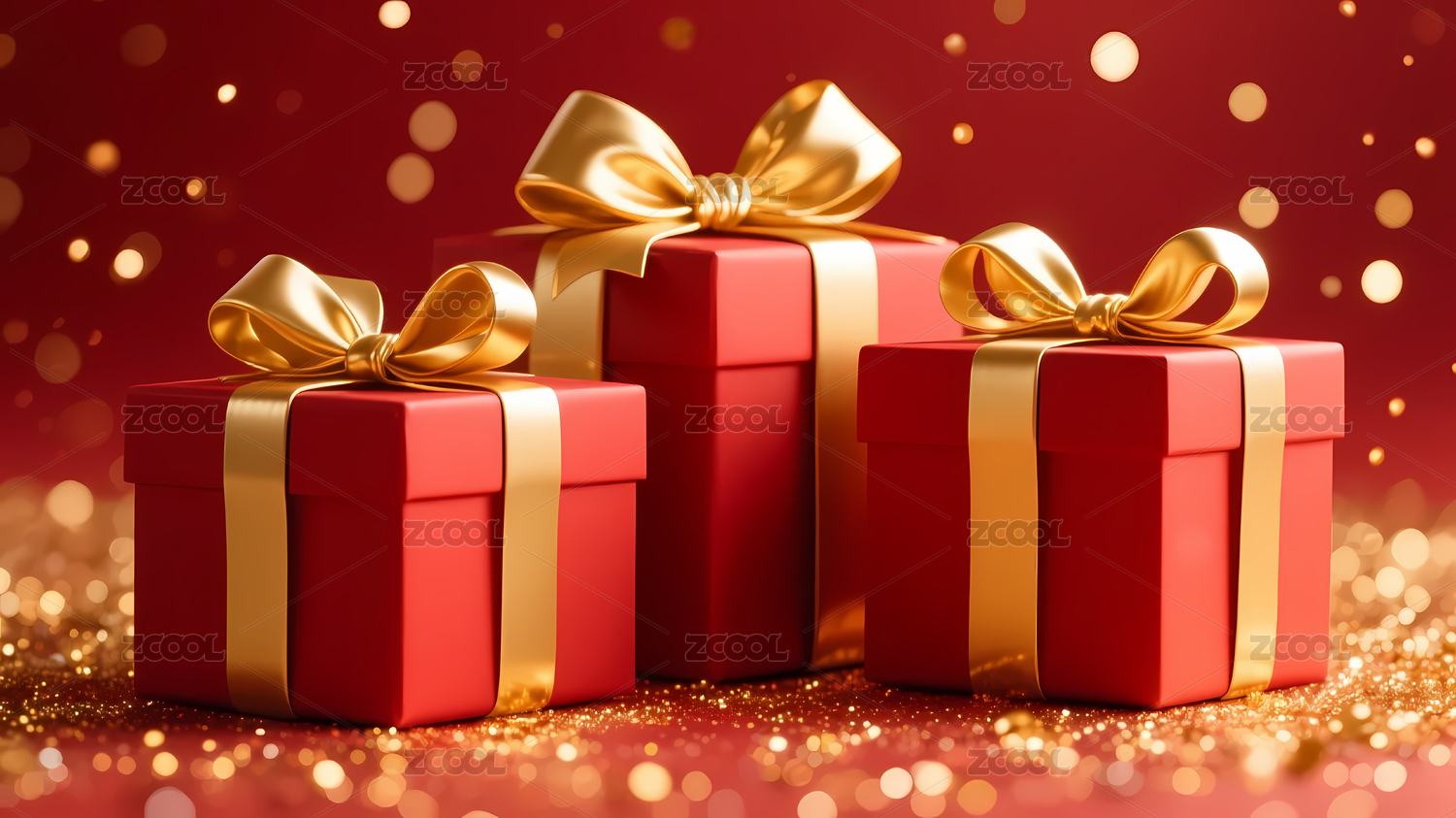 红金礼盒光斑红色背景