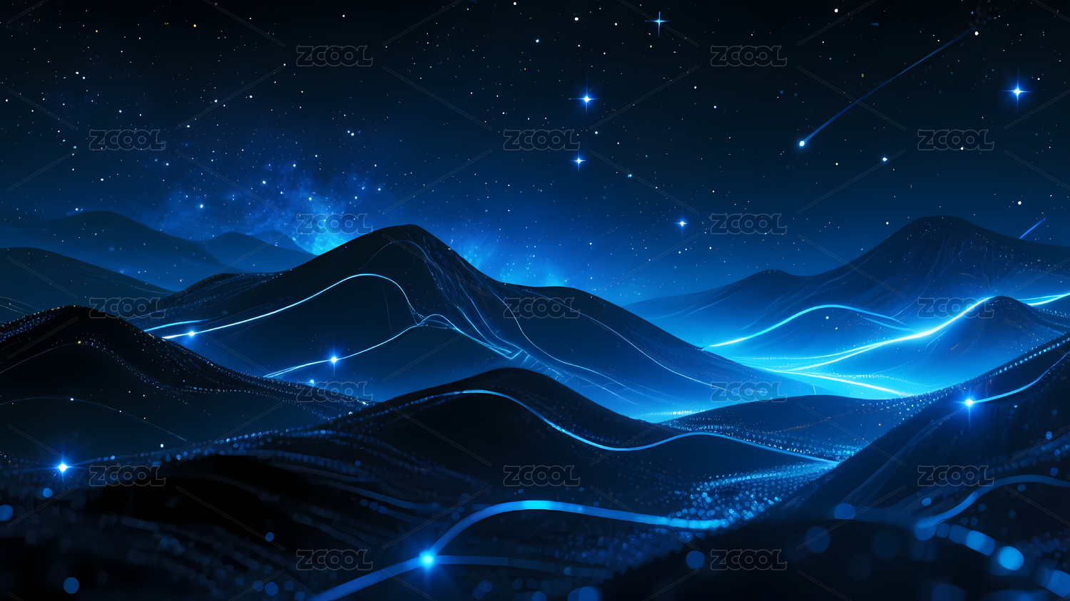 蓝色,背景,深蓝,神秘,夜空,星星,光点,山脉,宁静,远处