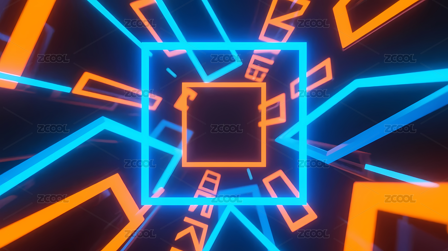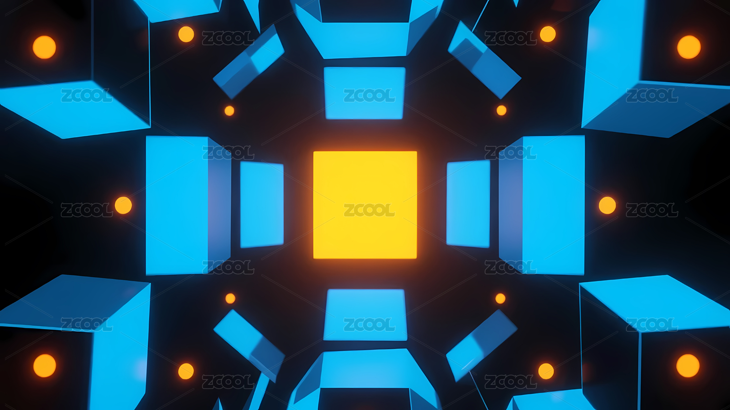 蓝色,背景,橙色,立方体,三维,结构,光线,几何,模糊,科技