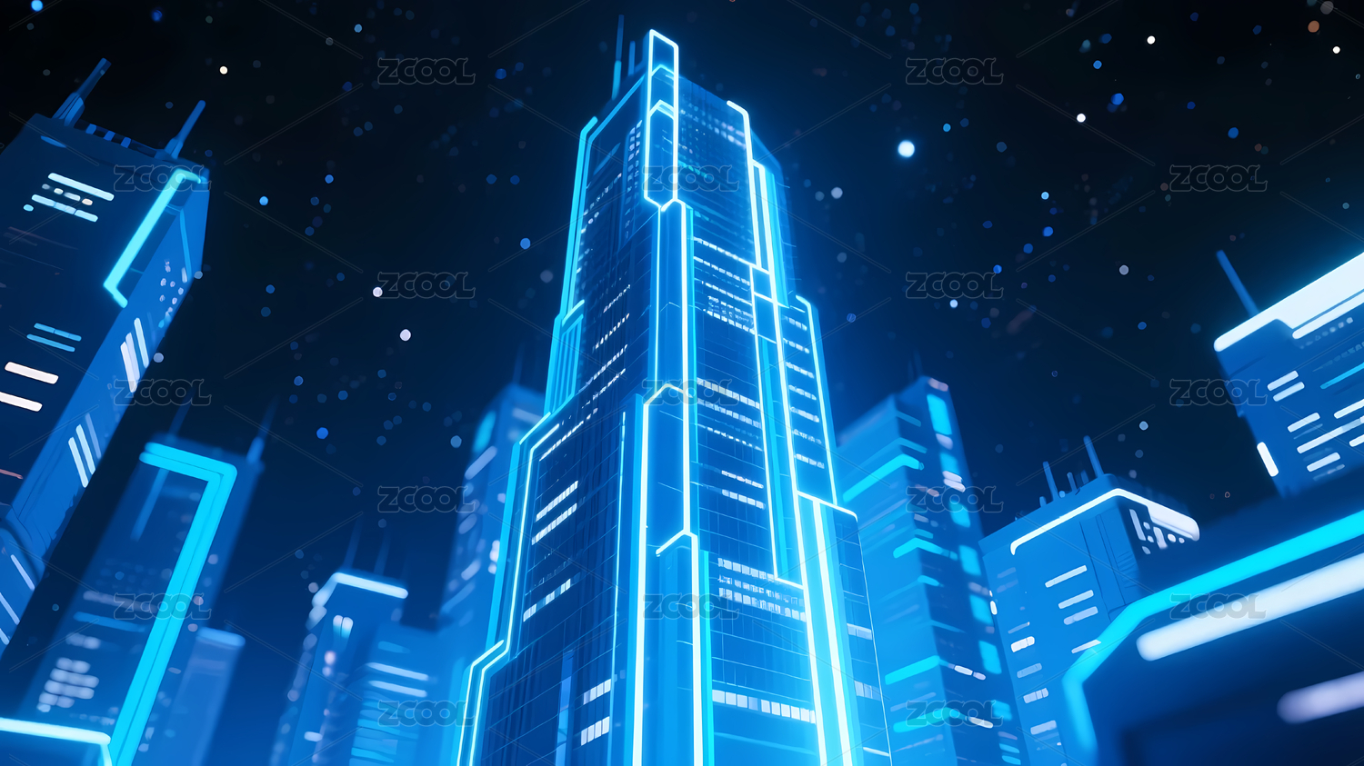 高楼,建筑,蓝色,夜空,未来,城市,橙黄色,灯火,景观,现代