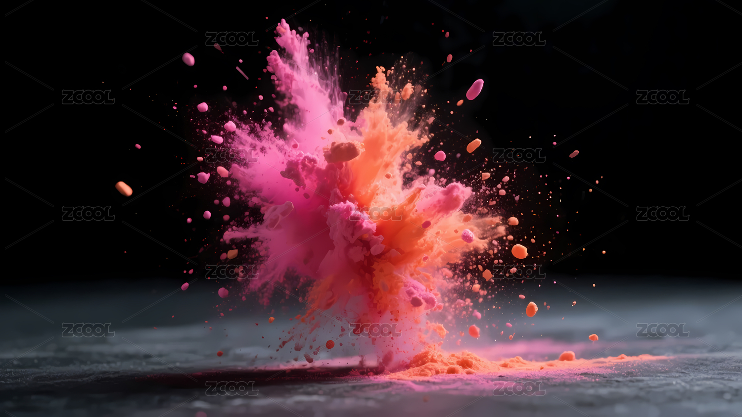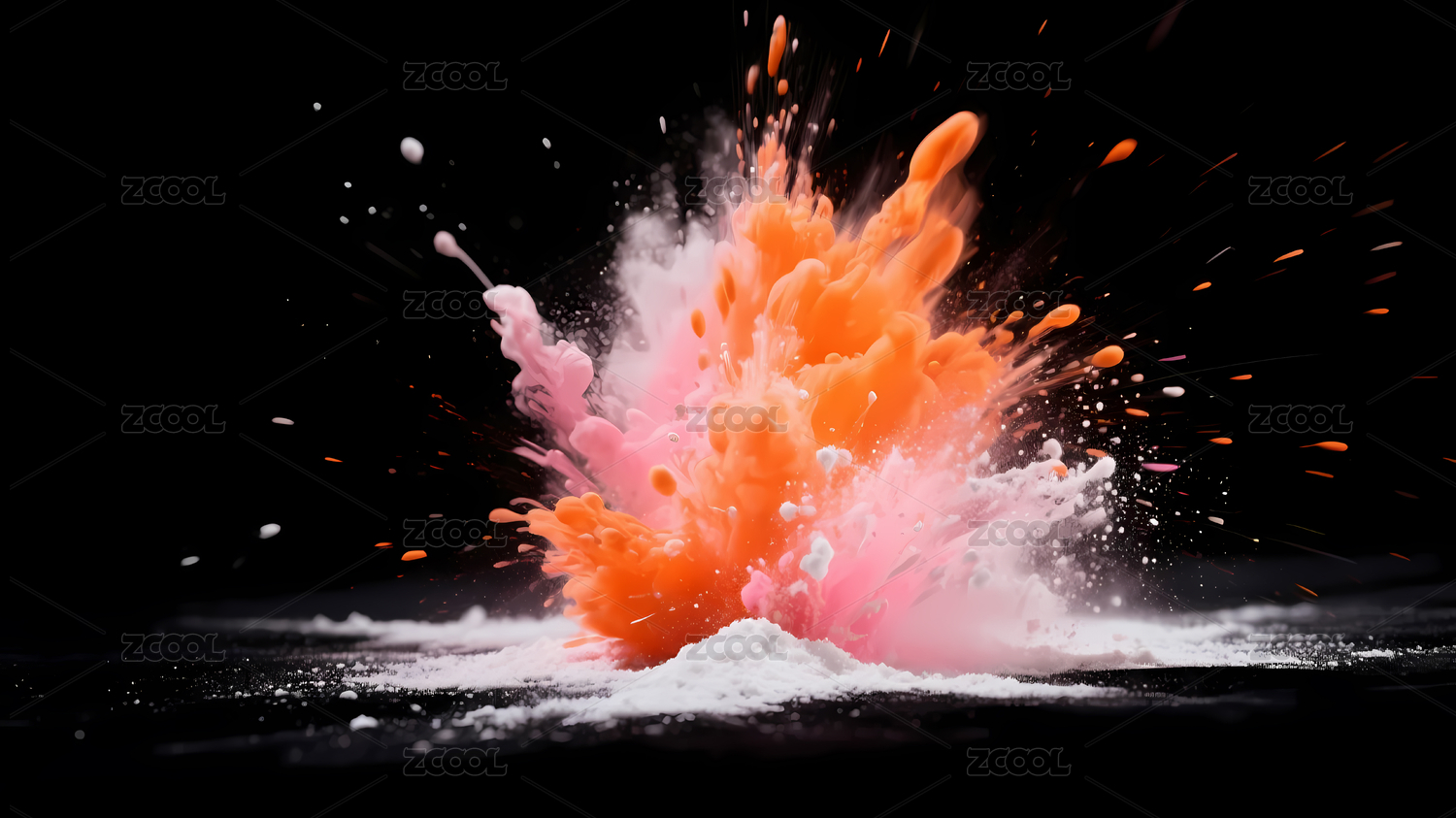 黑底粉白喷溅形态呈现抽象动态的装饰视觉