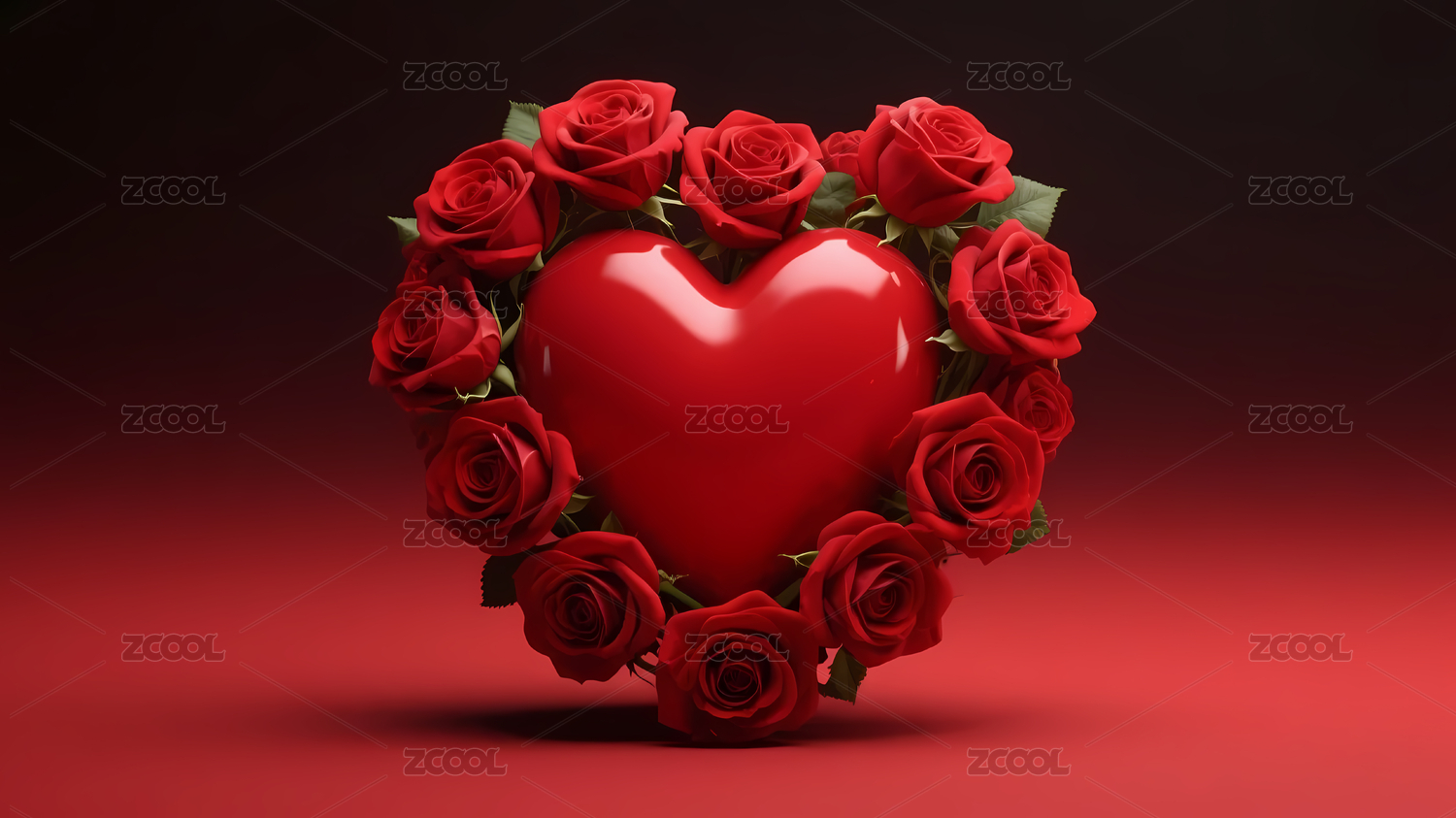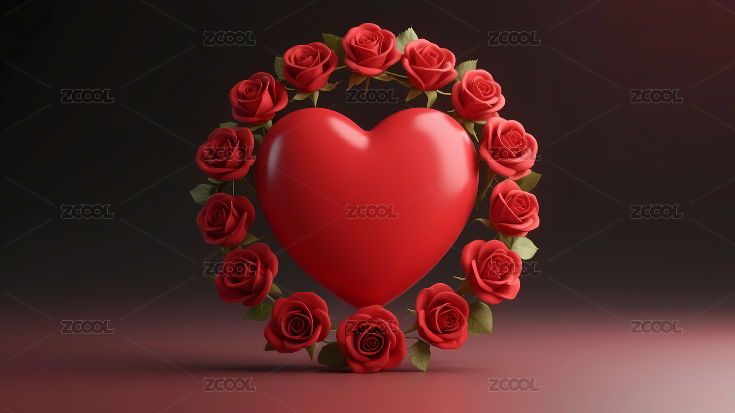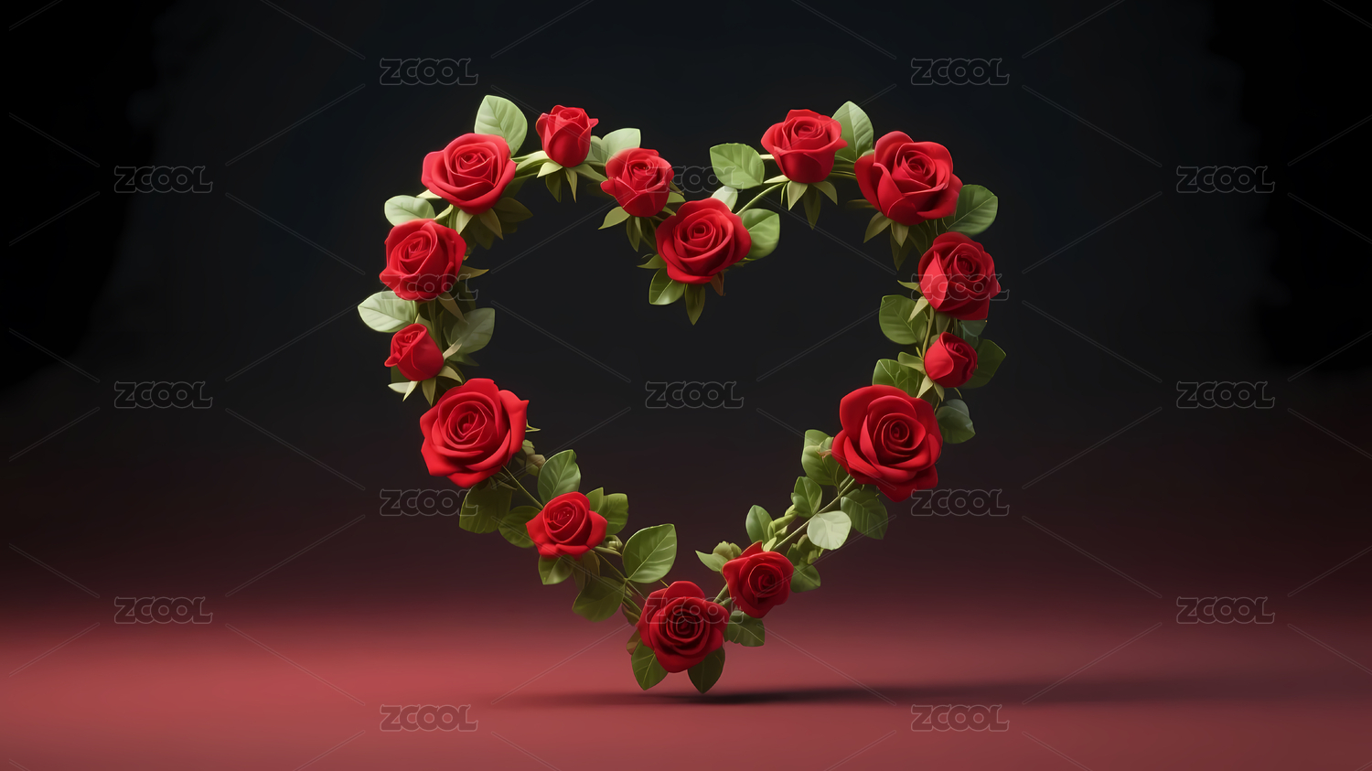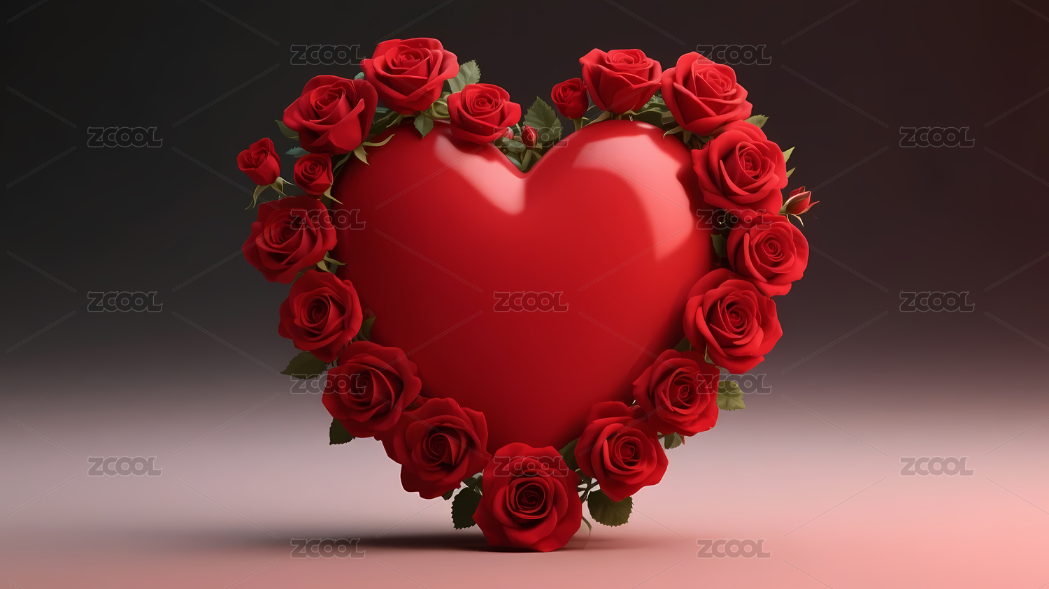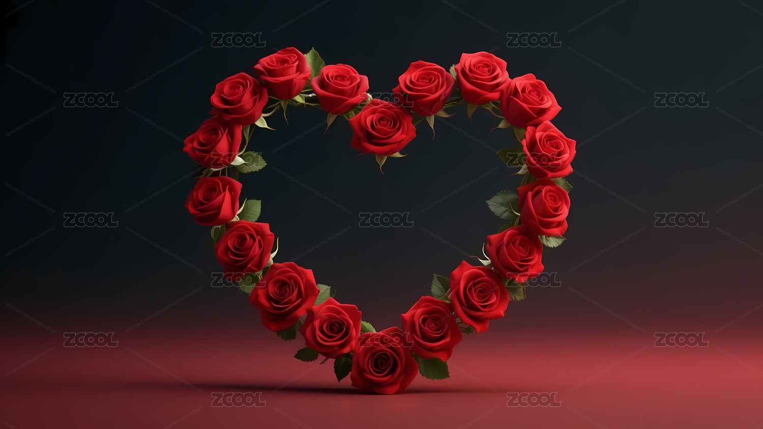 渐变,背景,红色,深色,绿色,装饰,主体,爱心,玫瑰,平面