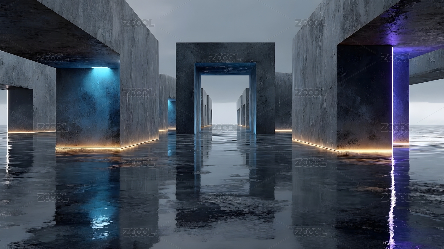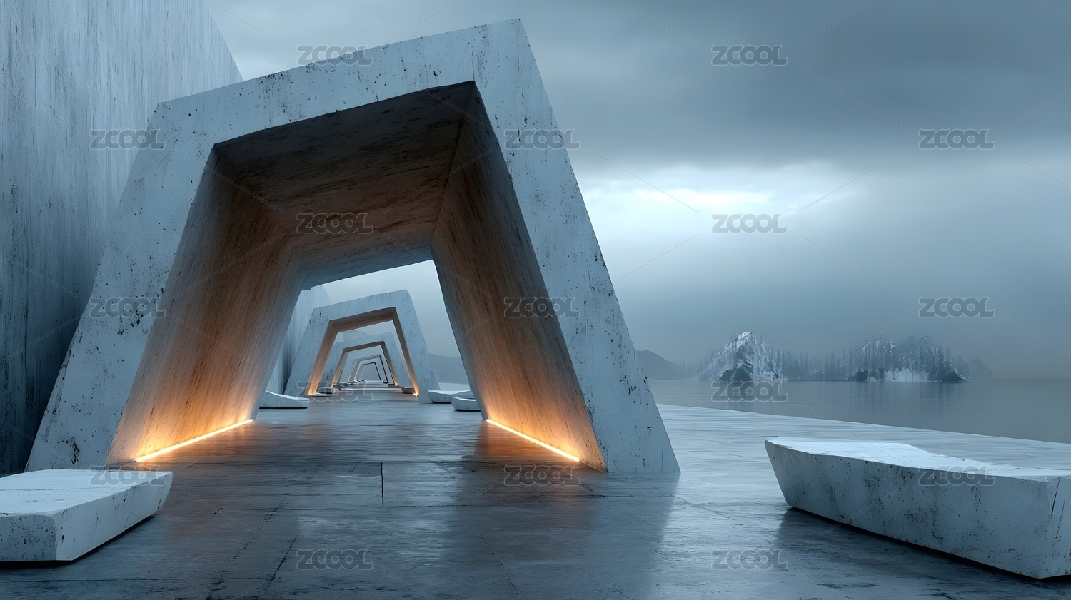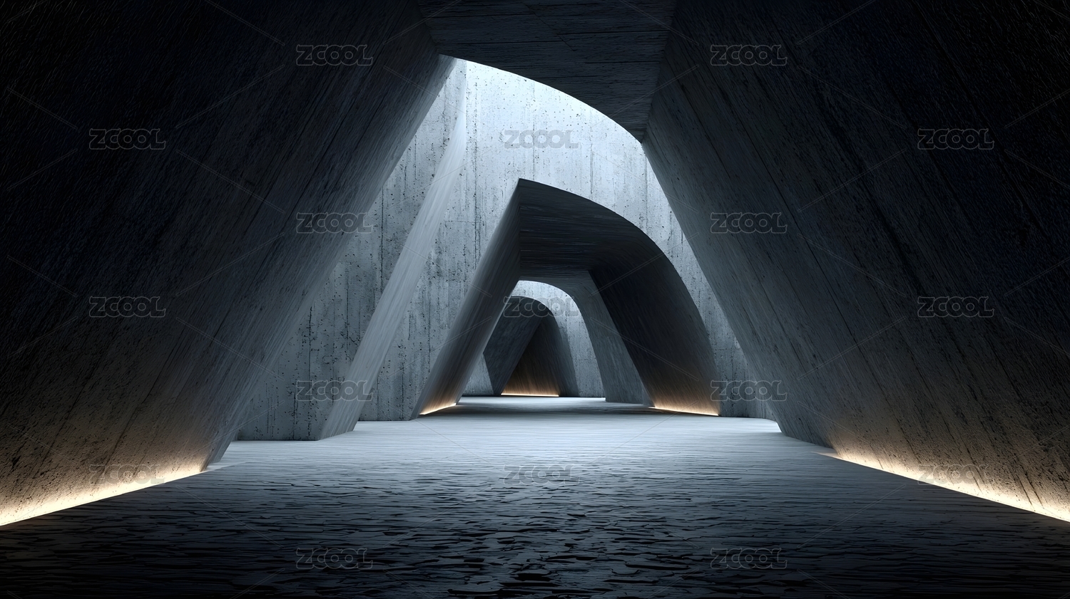 未来感混凝土建筑长廊