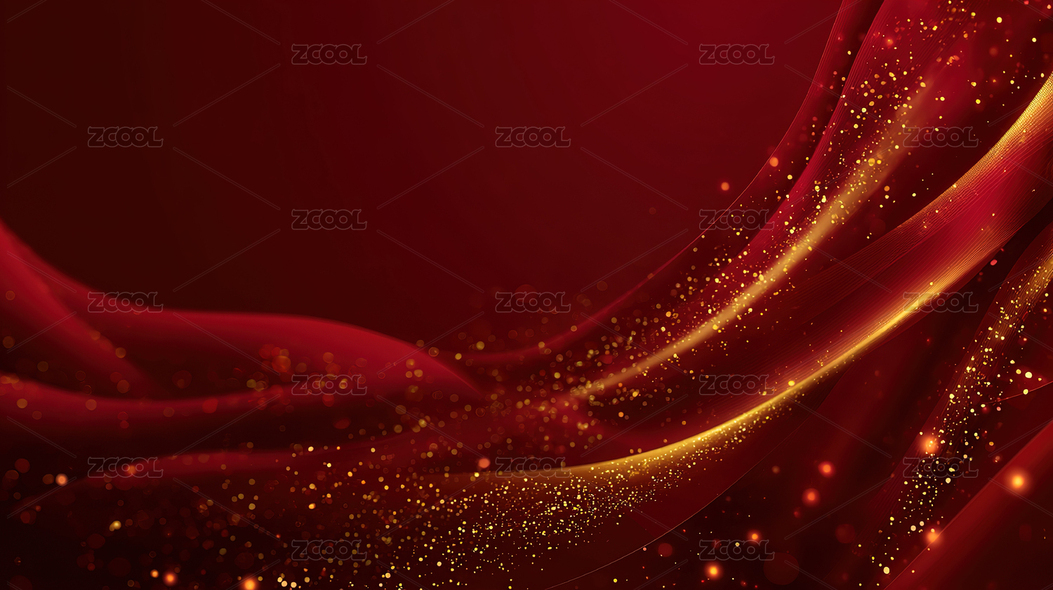 深红波浪与金色光点
