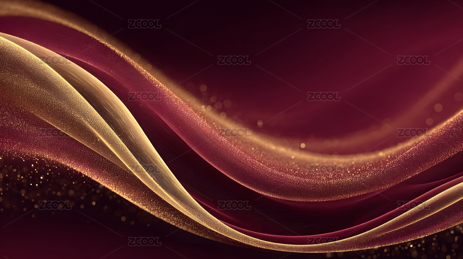 深红色背景上的金色波浪