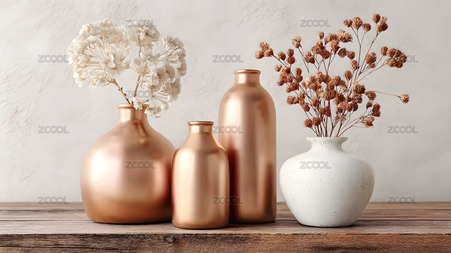 艺术,设计,自然,现代,装饰,花瓶,极简,米色,金色,陶瓷
