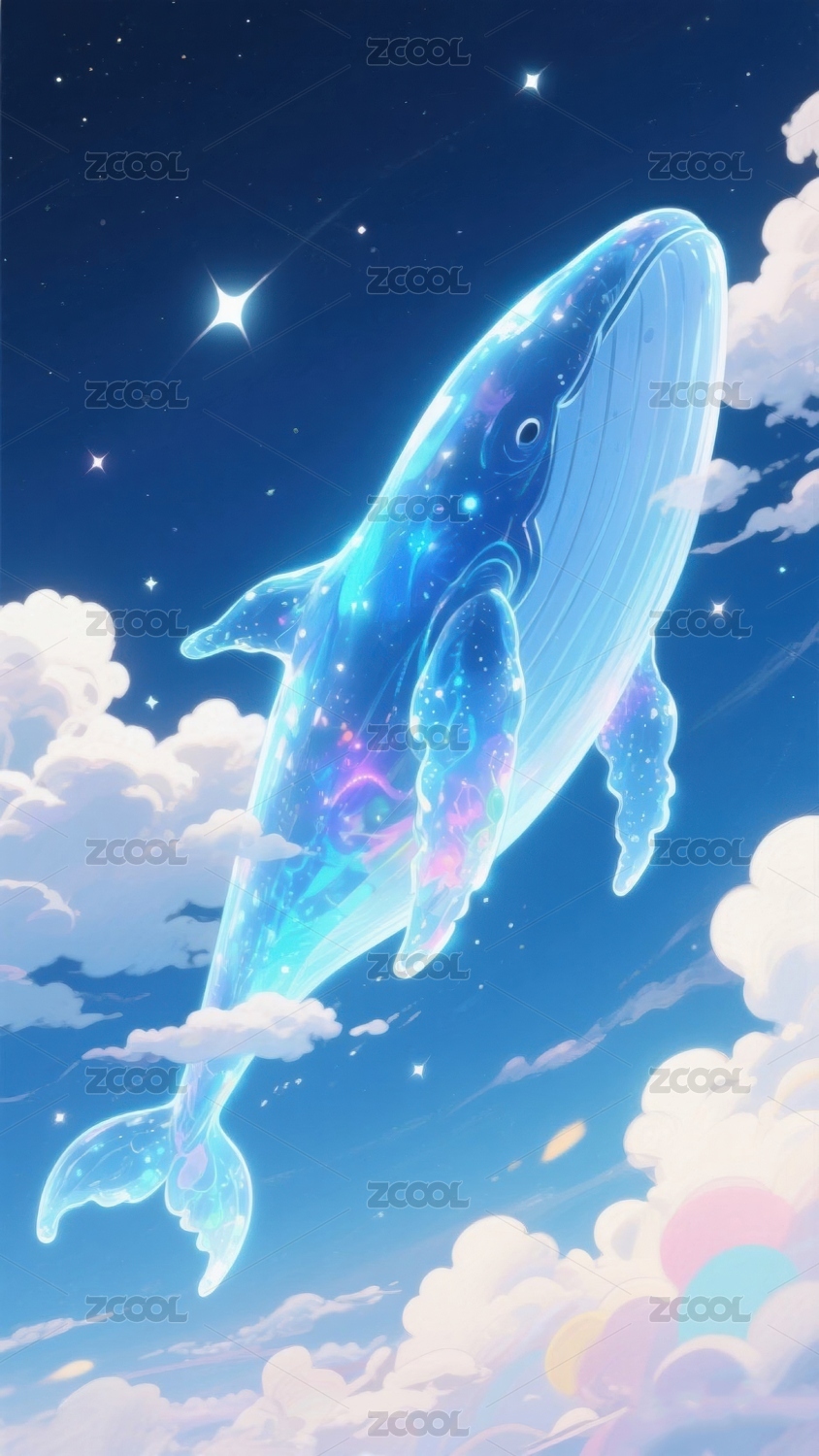 梦幻童话中的鲸鱼插画,世界海洋日概念插图