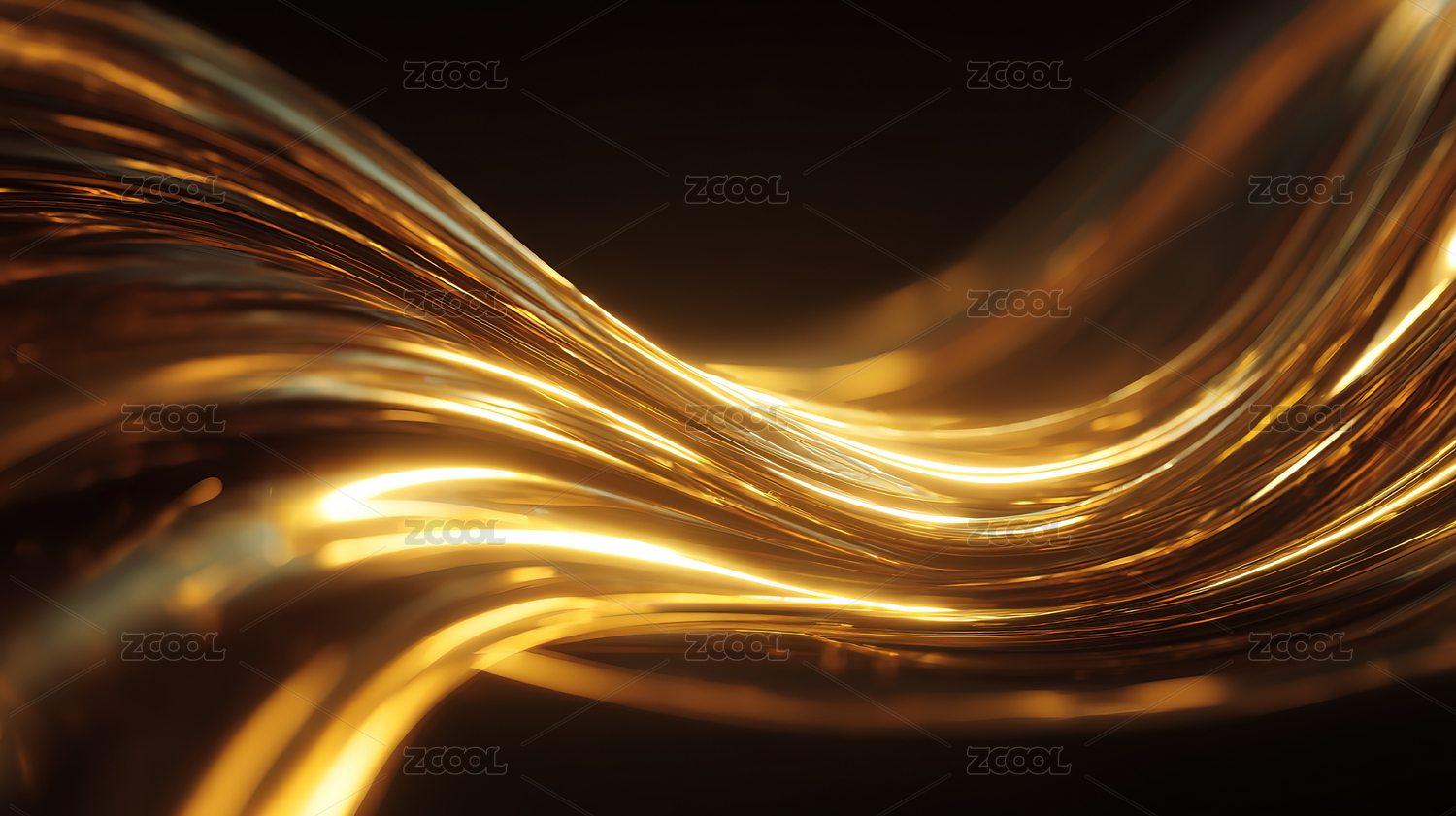 金色波浪线条的抽象艺术设计
