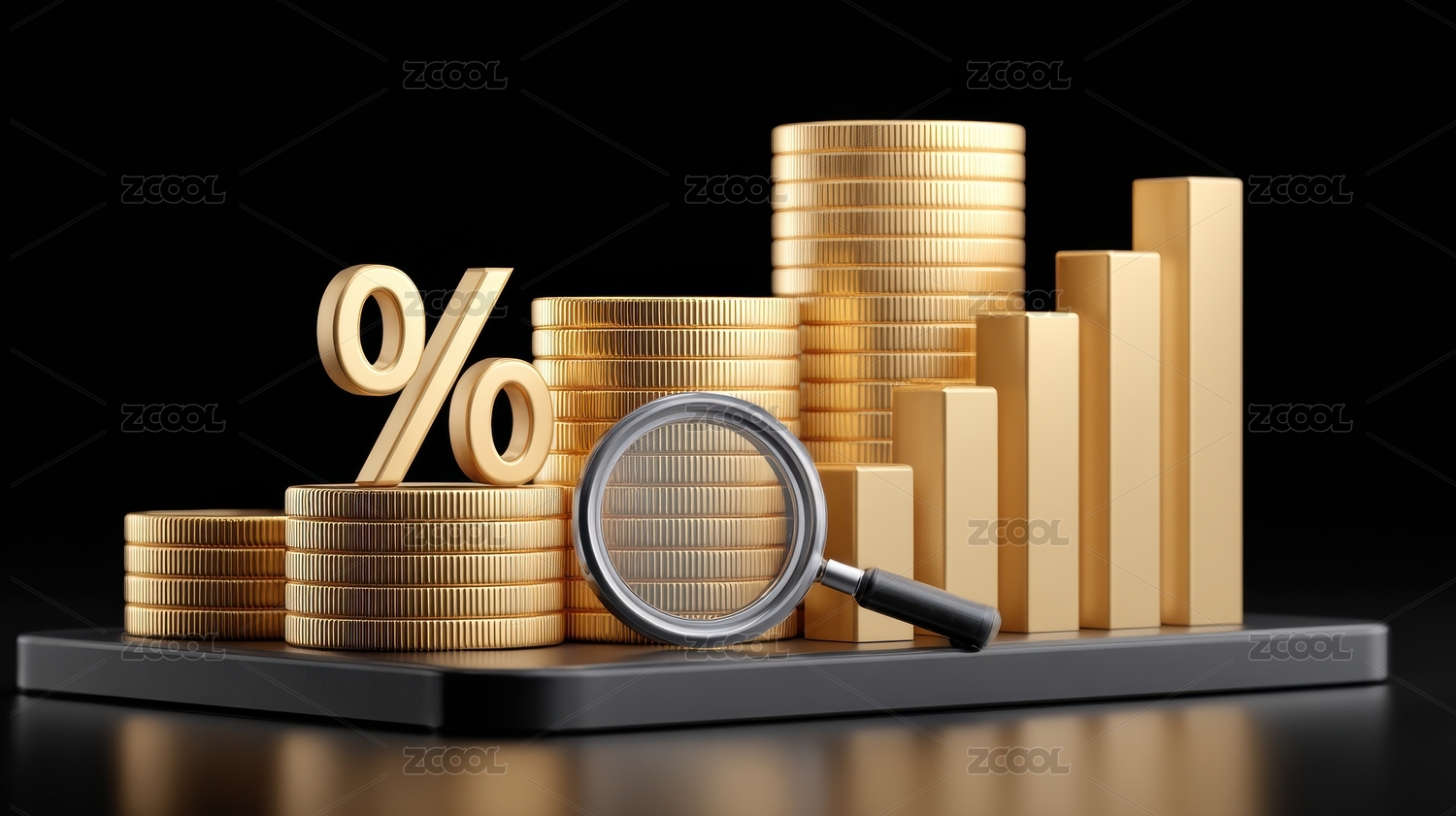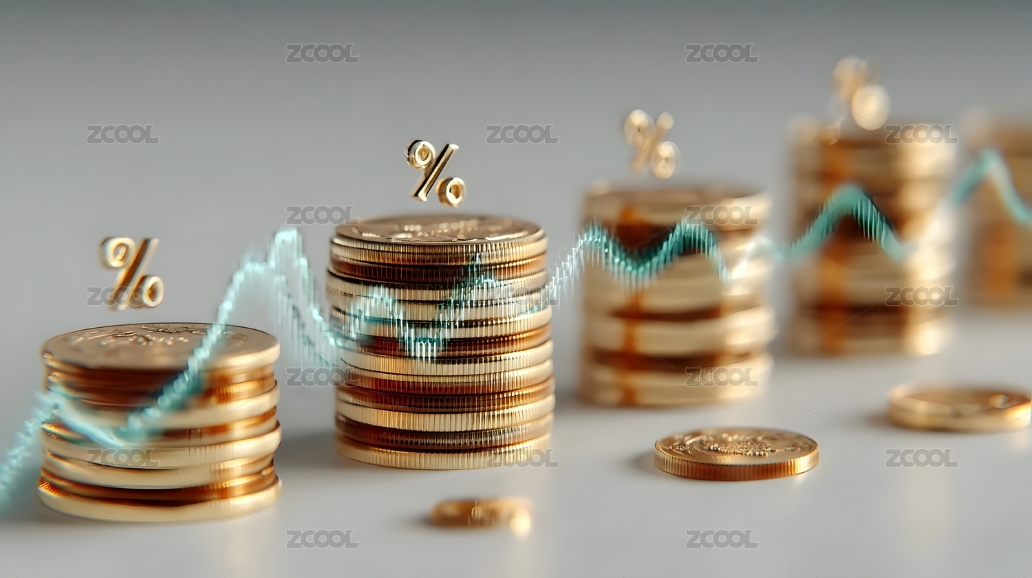 硬币堆叠与百分比符号