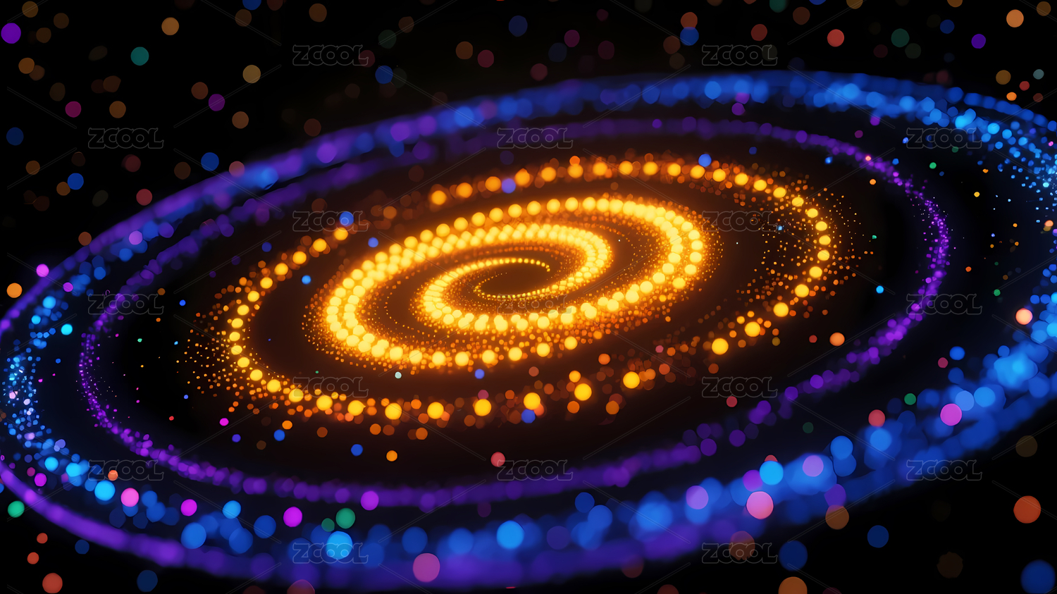 紫蓝渐变螺旋图案与光点