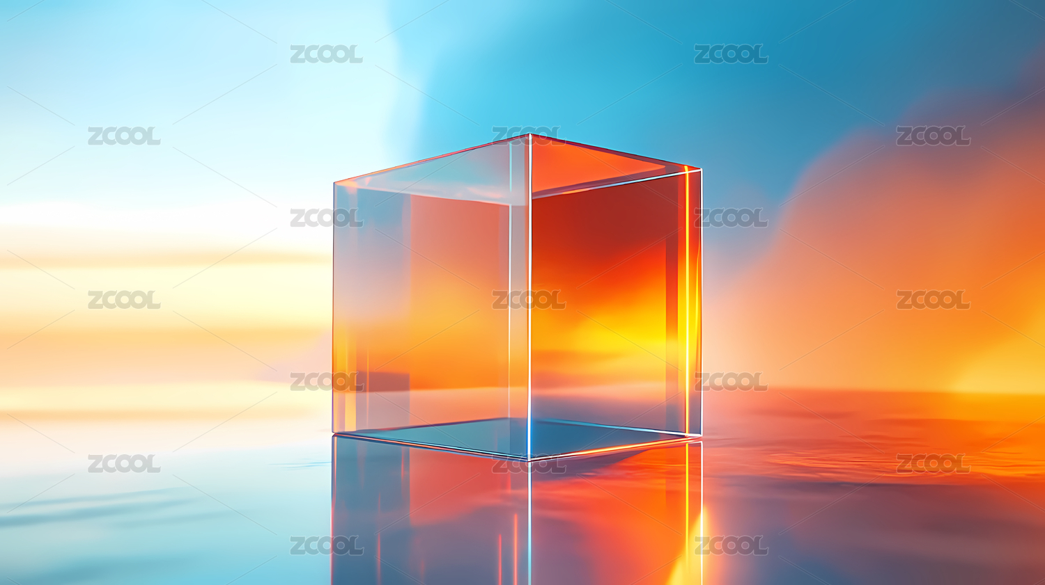 数码渐变蓝白色玻璃几何横版海报网页端背景